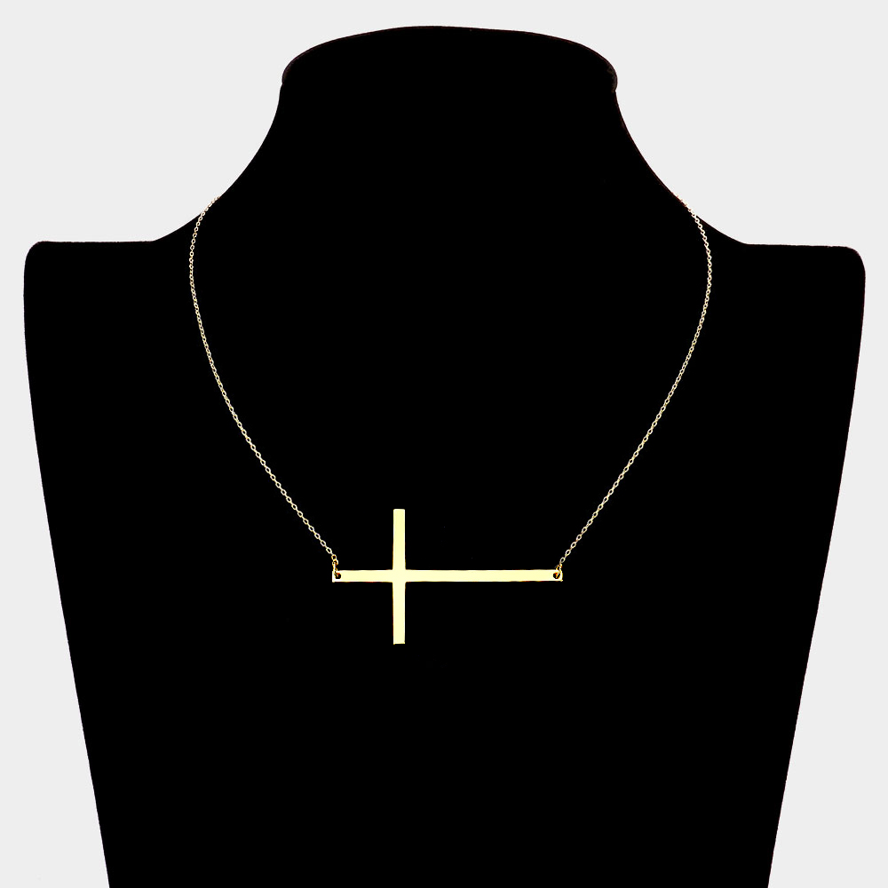 • Elegant sideways cross pendant necklace on a delicate chain, offering a sleek and modern take on a classic symbol. Perfect for everyday wear, layering, or meaningful gifting with a minimalist spiritual touch.