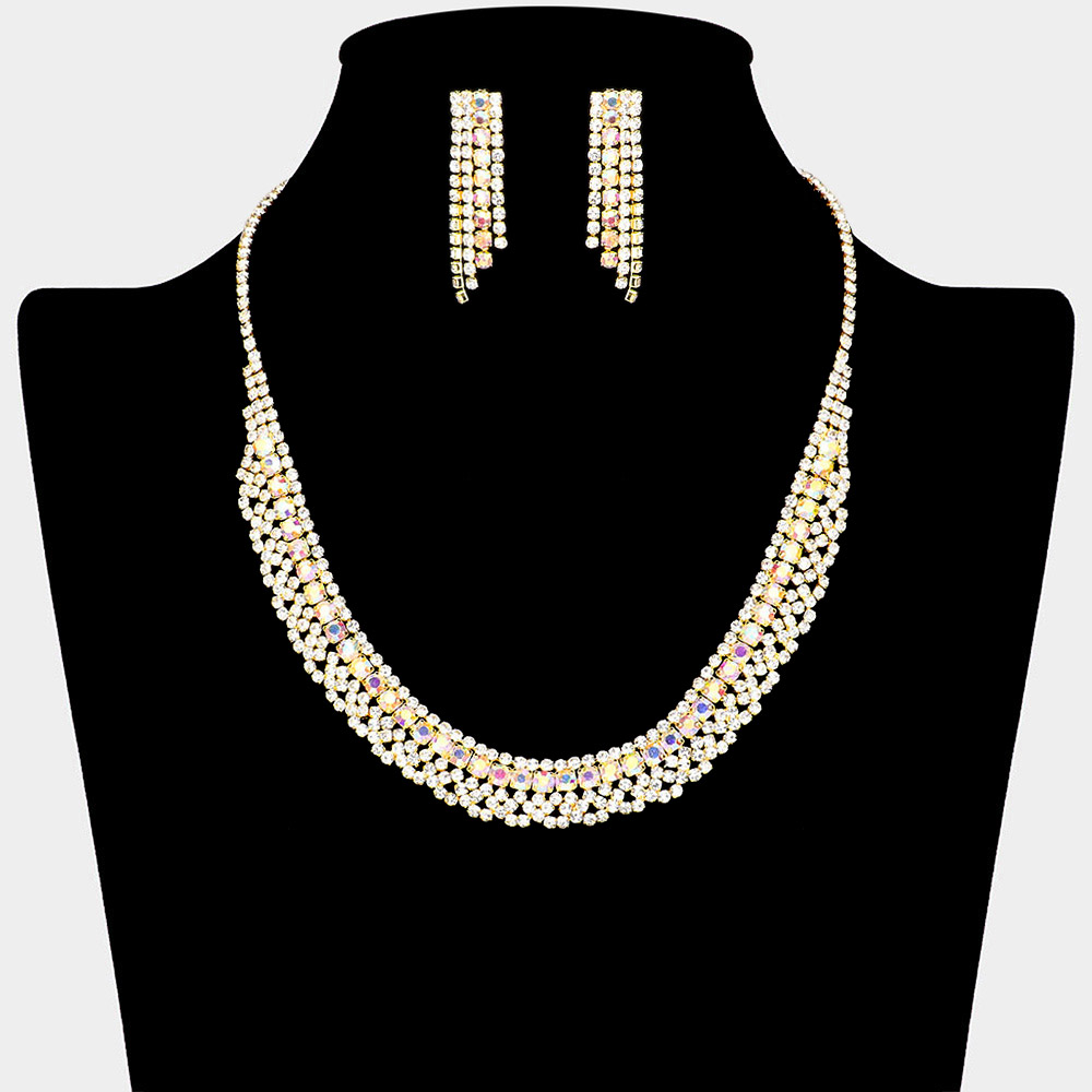 Details • Necklace Size : 15" L + 4" L • Decor Size : 0.5" L • Earring Size : 1.5" L • Dazzle with timeless glamour in this Layered Sparkling Crystal Necklace and Earring Set. Designed with cascading rows of brilliant stones, it adds a luxurious radiance to any outfit—ideal for weddings, evening galas, and festive celebrations that call for effortless sophistication.