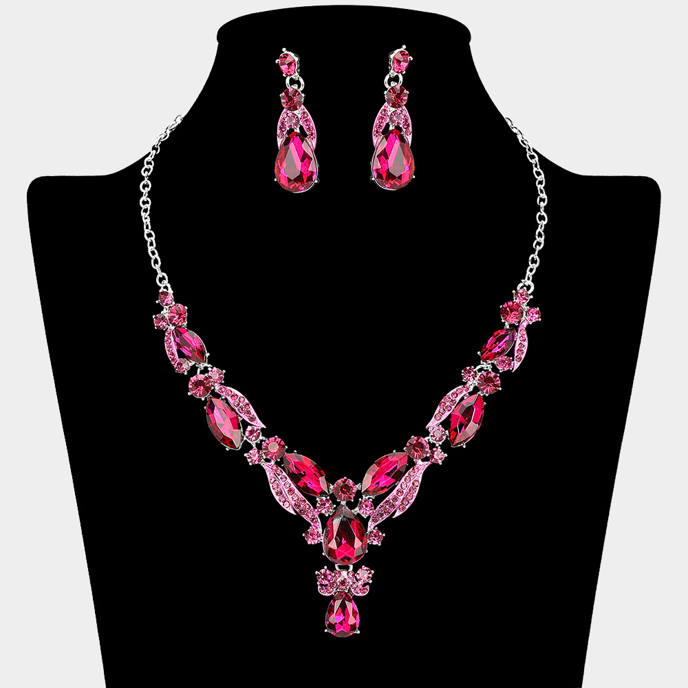 Marquise Teardrop Cluster Embellished Evening Necklace