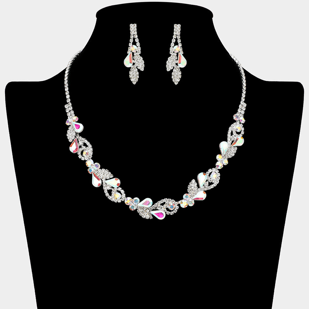 Details • Necklace Size : 16" + 4" L • Decor Size : 0.6" L • Earrings Size : 1.5" L • Elevate your elegance with this leaf cluster necklace and earring set. Designed with intricate details and shimmering stones, it offers a graceful blend of sophistication and sparkle. Ideal for weddings, evening events, and celebrations, it adds a radiant finishing touch to any ensemble.