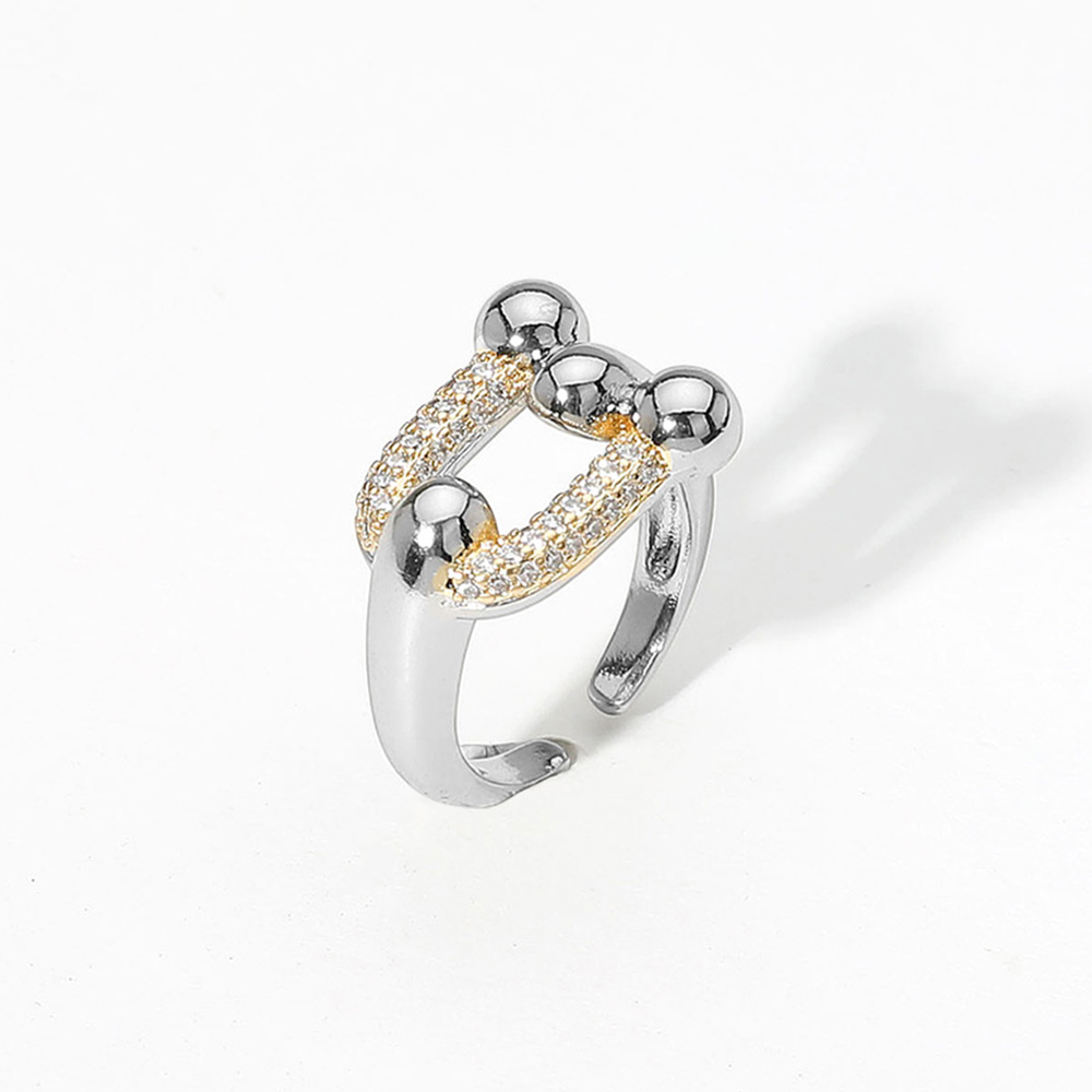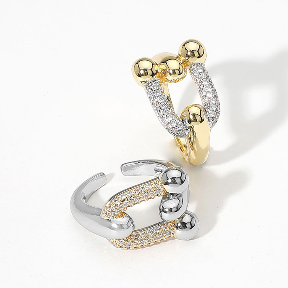 CZ Stone Paved Hardware Pointed Adjustable Ring