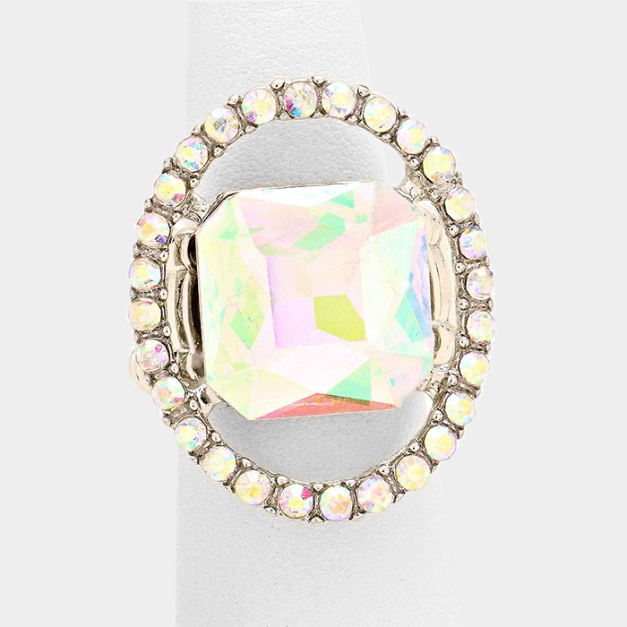 Square Stone Center Rhinestone Paved Rim Stretch Ring