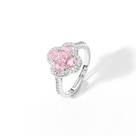 Stainless Steel CZ Paved Quatrefoil Center Hinged Bangle Bracelet