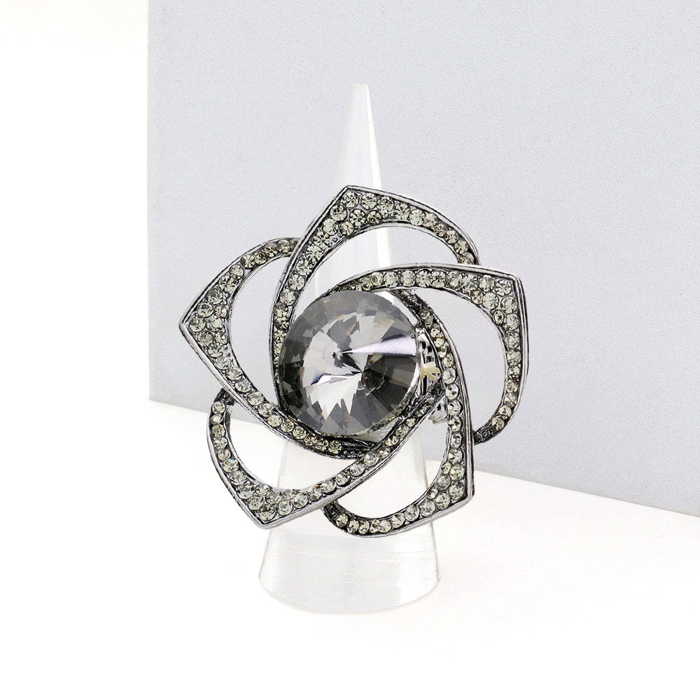 Round Stone Centered Rhinestone Embellished Branch Flower Pin Brooch