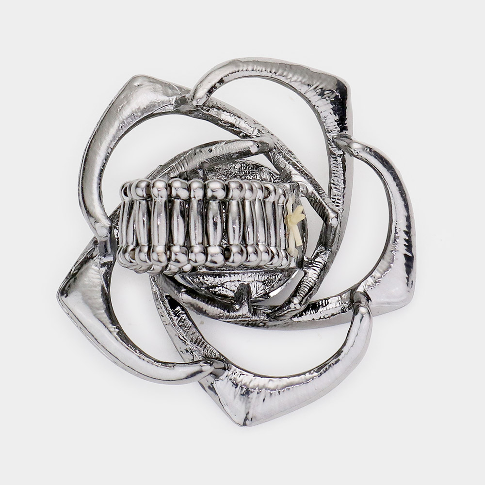 Round Stone Centered Rhinestone Flower Stretch Ring
