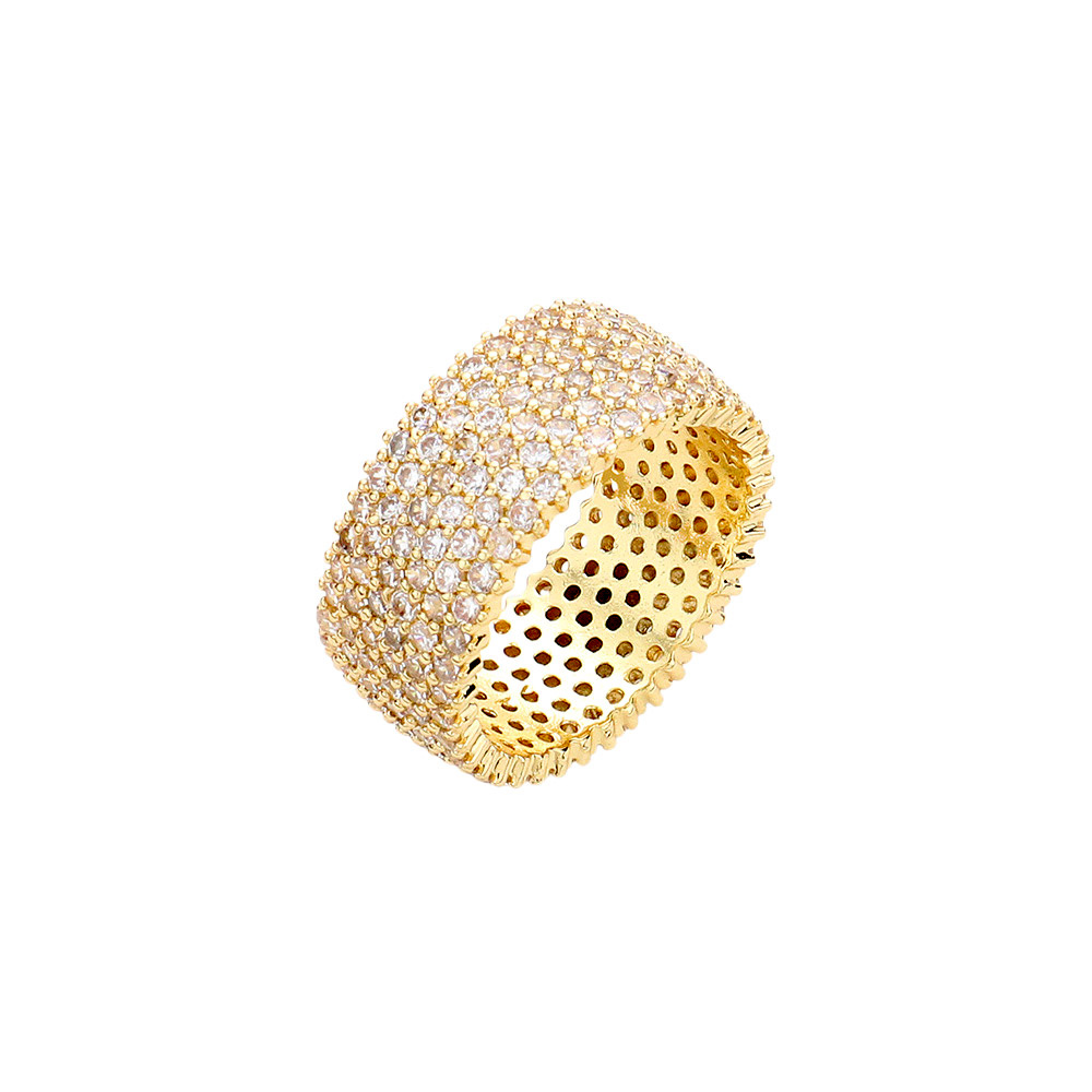 • Elegant wide band ring featuring a full pave surface that delivers maximum sparkle and a bold statement look. Designed with a smooth interior for comfortable wear, this shimmering piece adds refined brilliance to any style and makes a standout accessory for everyday or special occasions.