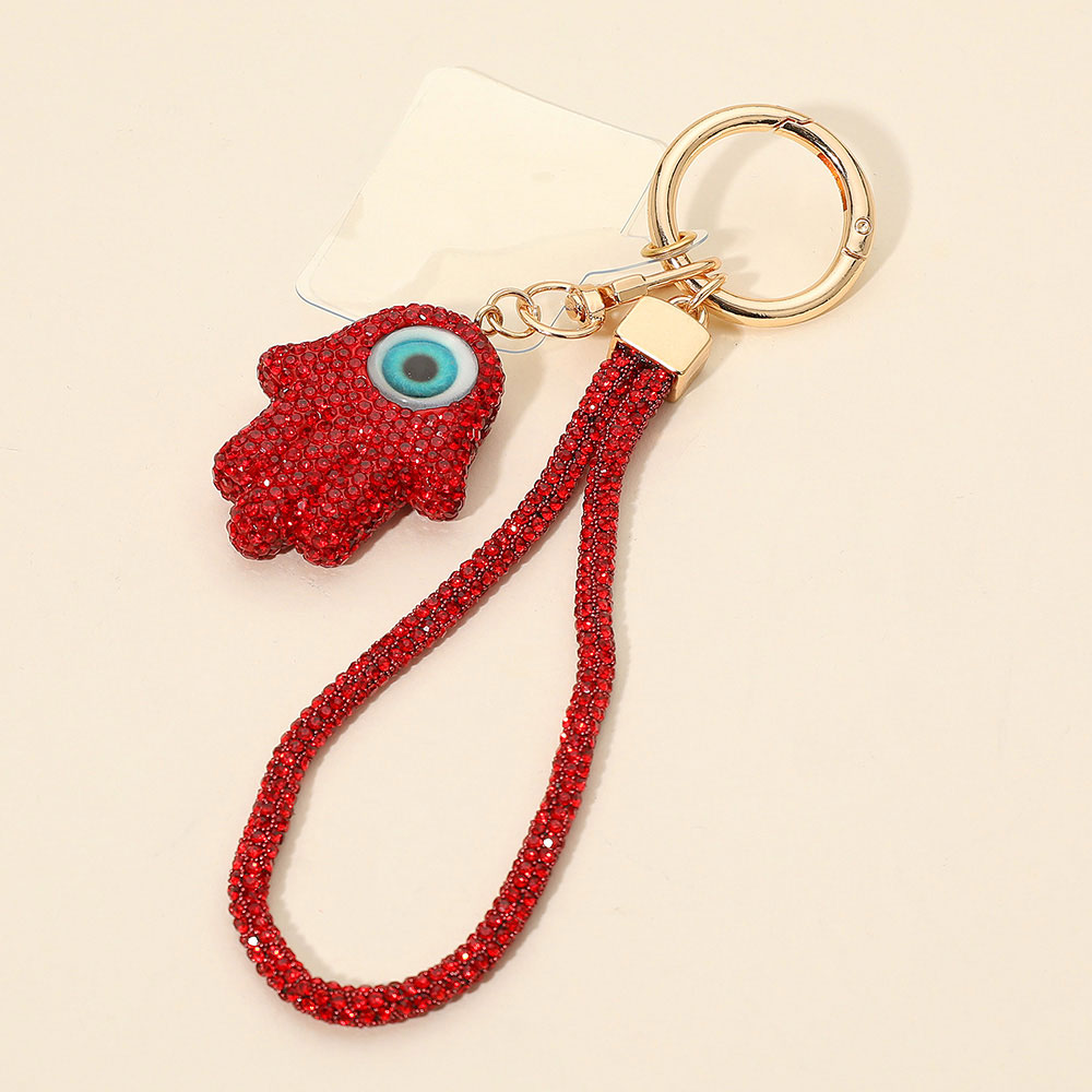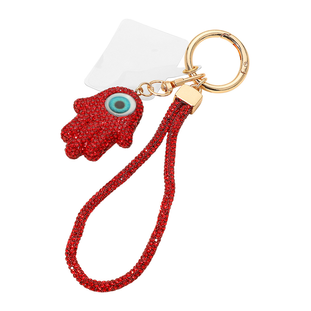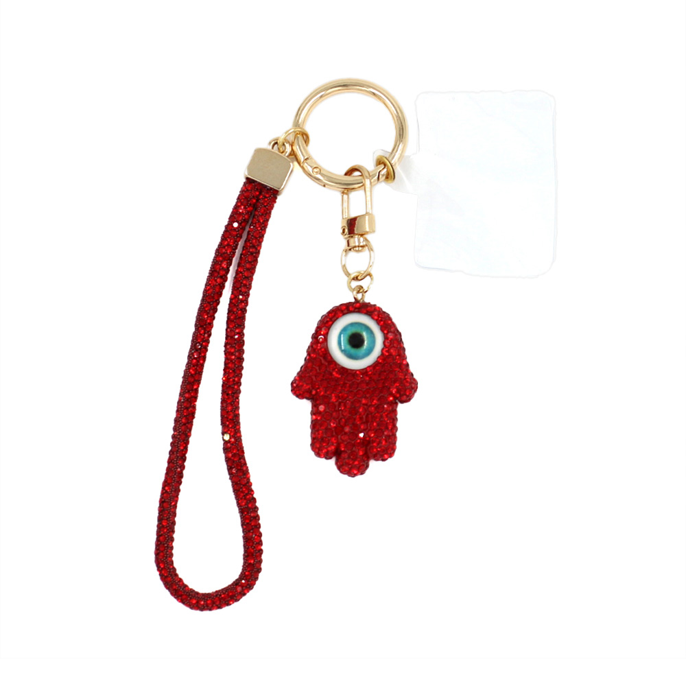 Bling Studded Evil Eye Hamsa Hand Charm Keychain Bag Charm Phone Holder