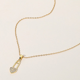 White Gold Dipped Metal Chain Detailed Heart Pendant Necklace