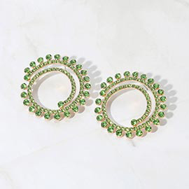Round Stone Centered Rhinestone Embellished Branch Flower Pin Brooch