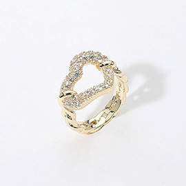 14K Gold Plated CZ Stone Paved Heart Stud Earrings