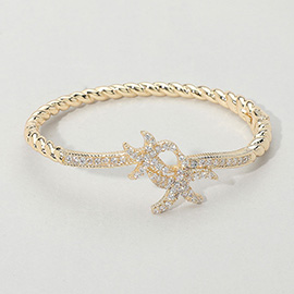 14K Gold Plated Two Tone CZ Stone Paved Hook Accent Woven Bangle Bracelet
