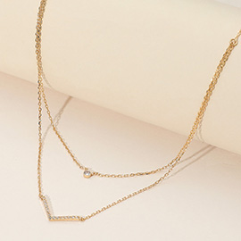 SECRET BOX_Stainless Steel Heart Pendant Accent Herringbone Chain Layered Necklace