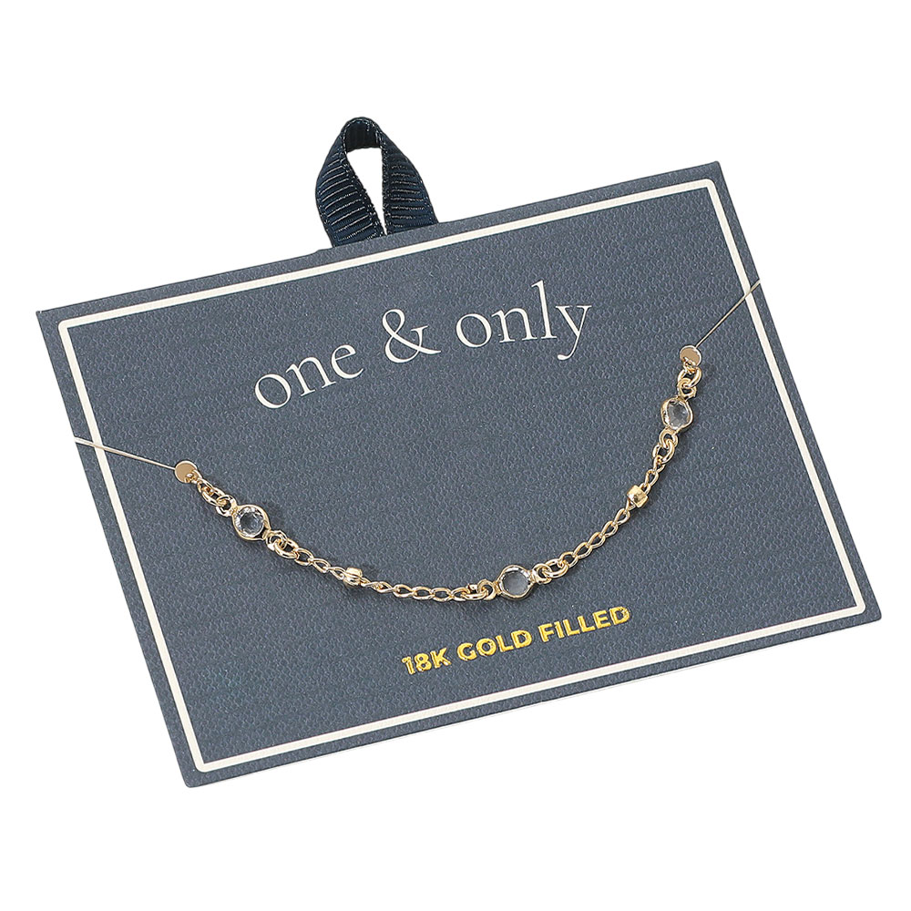Details • Size : 0.2" H, 7.5" L • Lobster Clasp Closure • Elegant chain bracelet adorned with sparkling bezel-set crystals for a refined, minimalist look. Its delicate links and polished shine make it perfect for layering or wearing solo. A timeless piece that adds subtle sparkle and sophistication to any outfit or occasion. • Gold Filled • Lead and Nickel Compliant • Made In Brazil