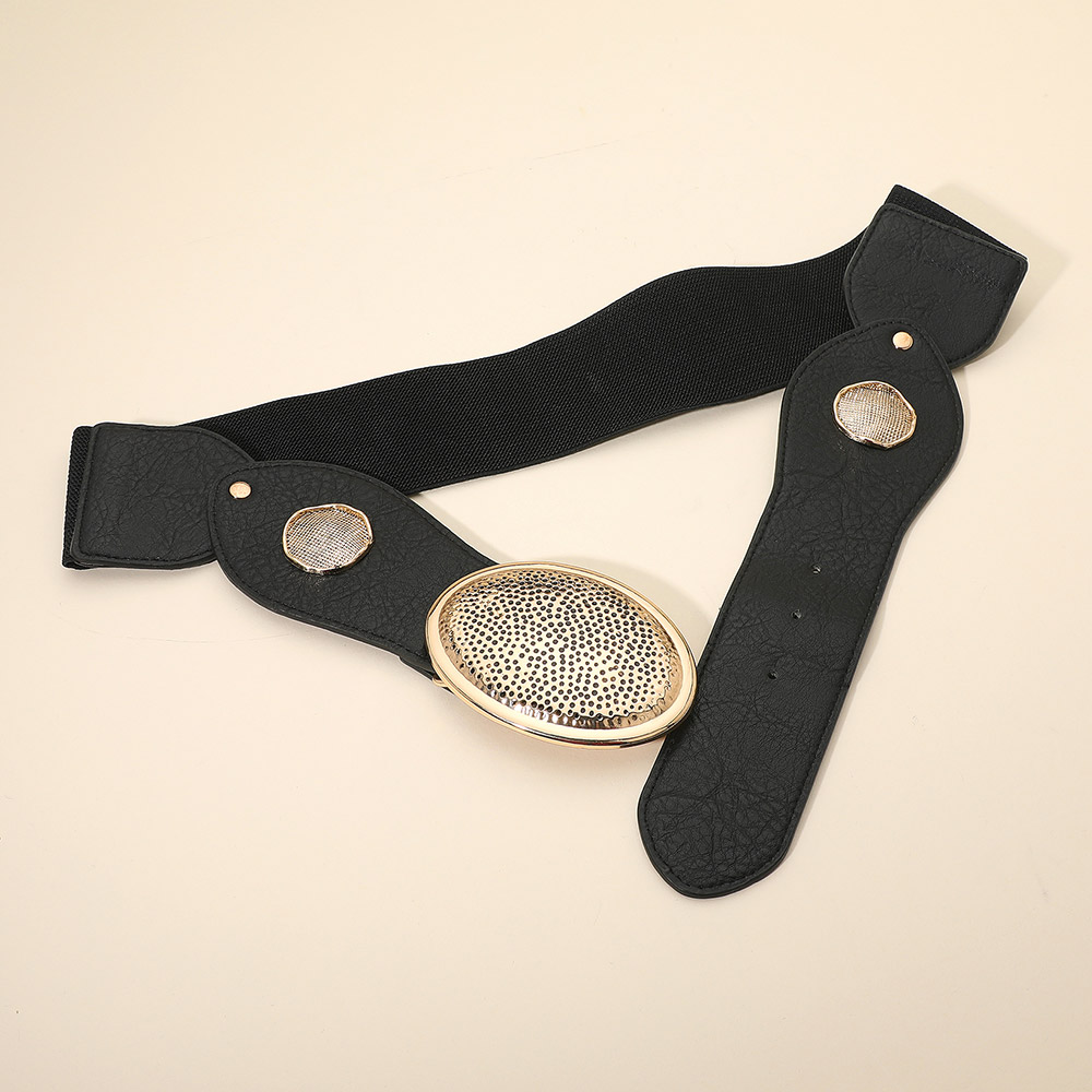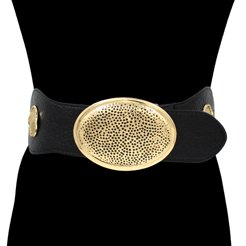 Bold Textured Metal Oval Buckle Accent Elastic Waist Belt