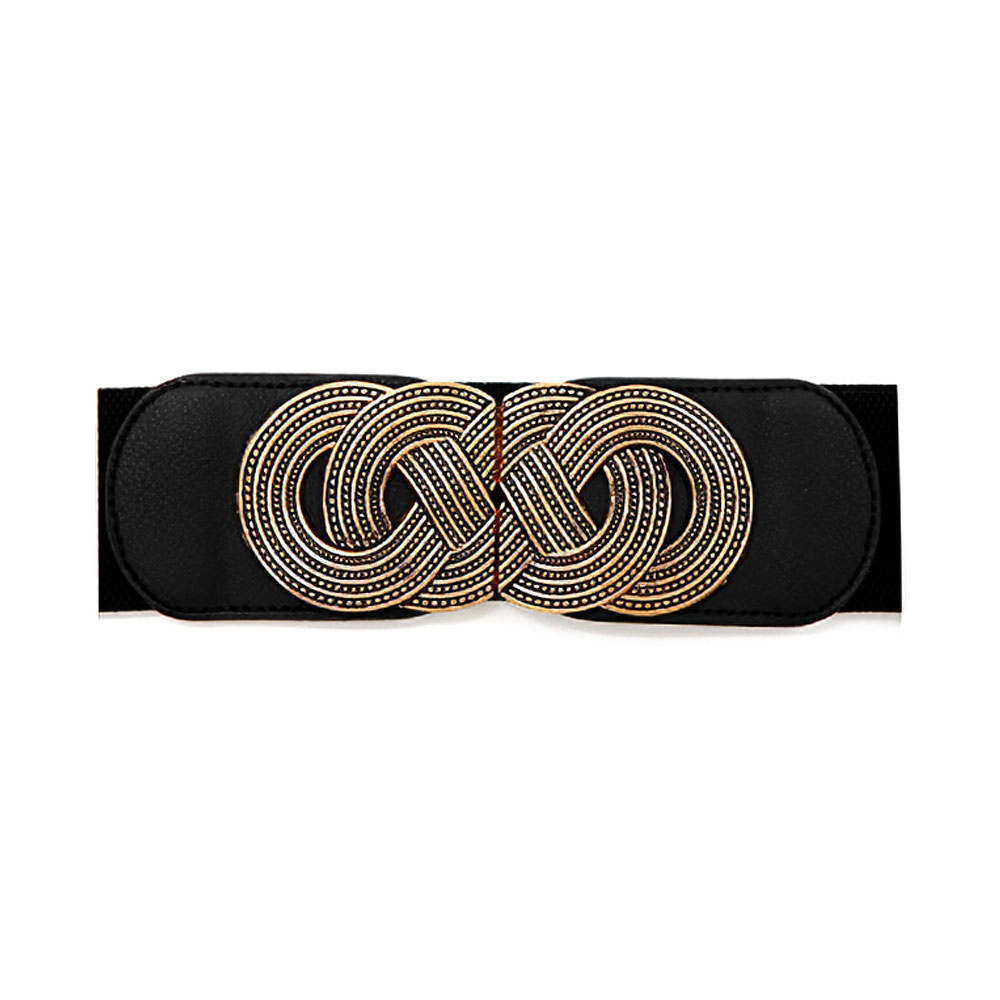 Interlocking Circle Buckle Accent Wide Elastic Waist Belt