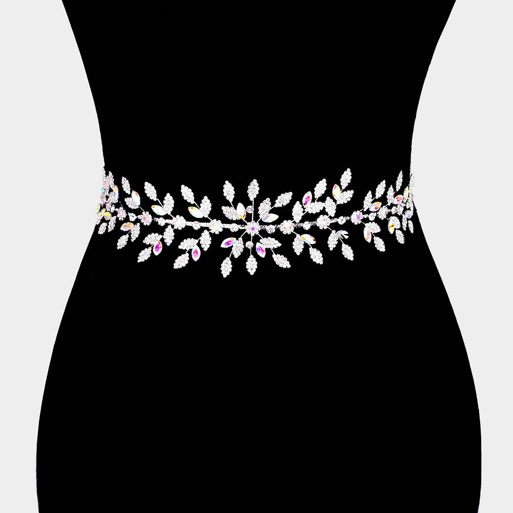 Marquise Crystal Floral Rhinestone Sash Ribbon Wedding Belt / Headband