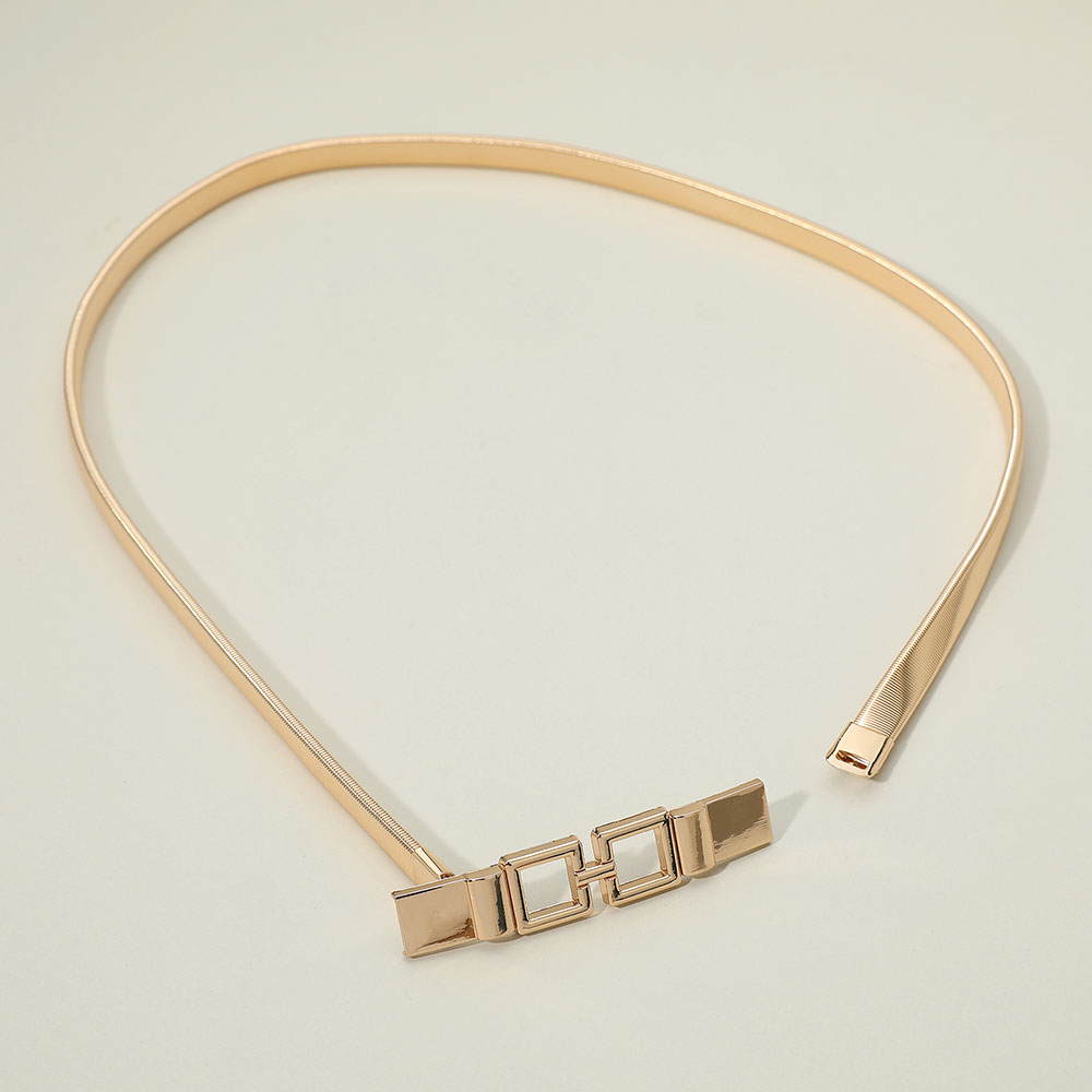 Open Double Square Metal Buckle Accent Slim Stretch Belt