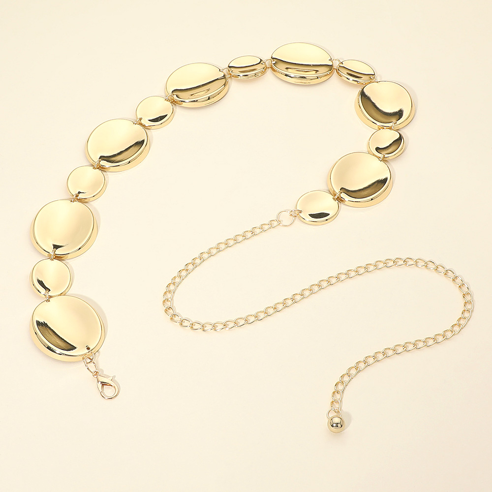 • Elevate any outfit with this sleek disc chain waist belt designed to define the silhouette with modern shine. Featuring smooth linked discs that sit comfortably at the waist, it adds refined statement appeal to dresses, jumpsuits, and evening looks, perfect for styling, layering, and standout occasions.