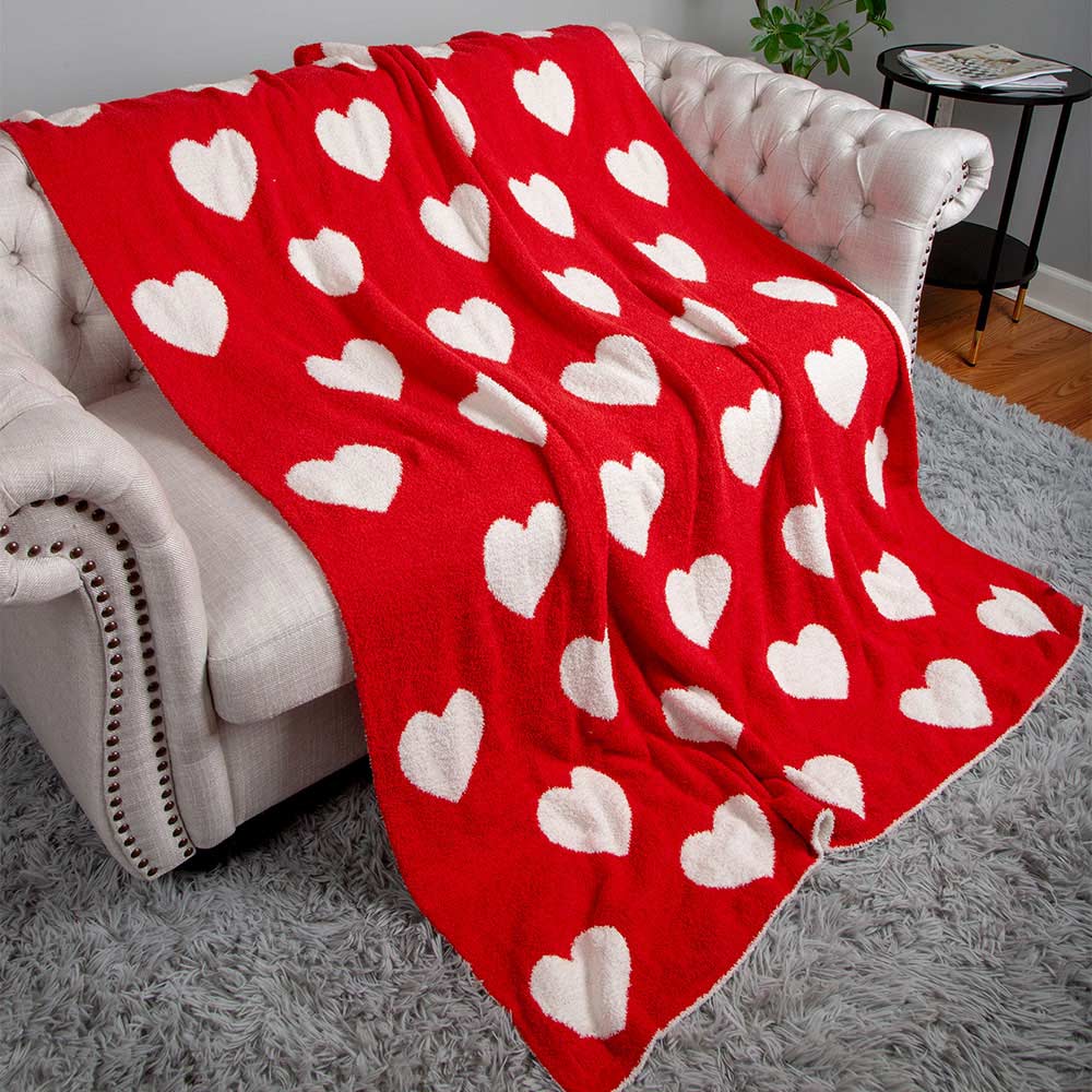 • Charming heart pattern throw blanket designed to add warmth and visual appeal to sofas, chairs, and beds. Ideal for seasonal dĂ©cor, gifting, or everyday lounging, this cozy accent piece enhances home styling while offering comfortable coverage for relaxation. Perfect for retail and home collections.