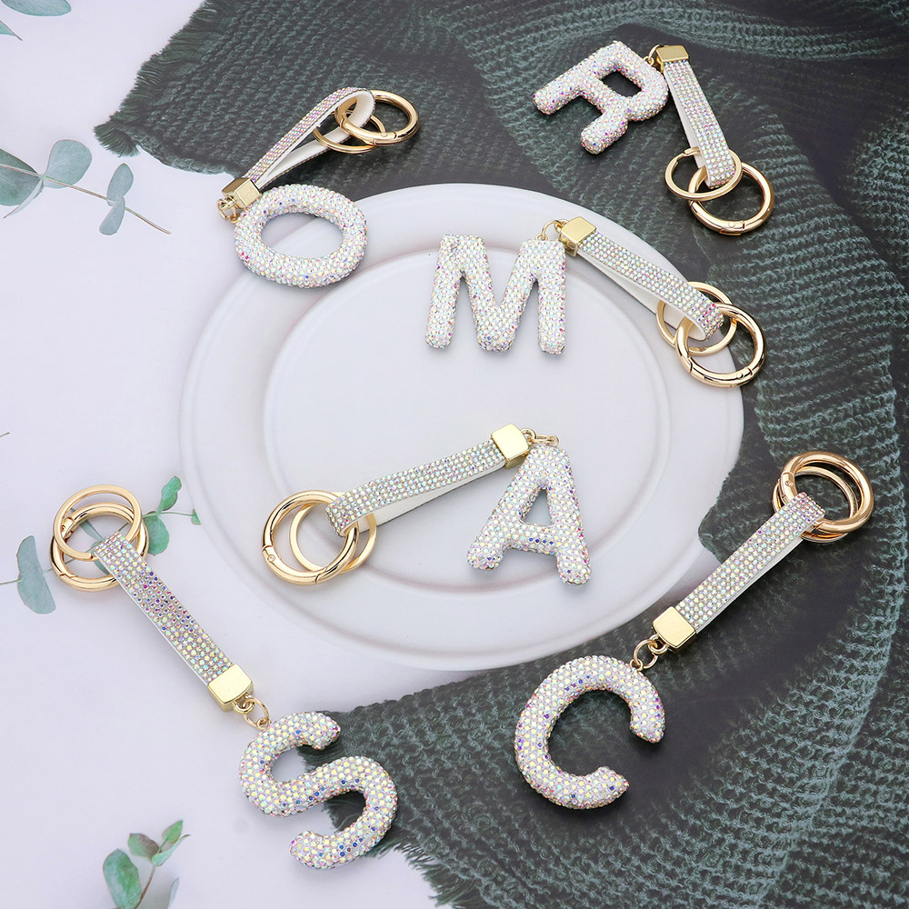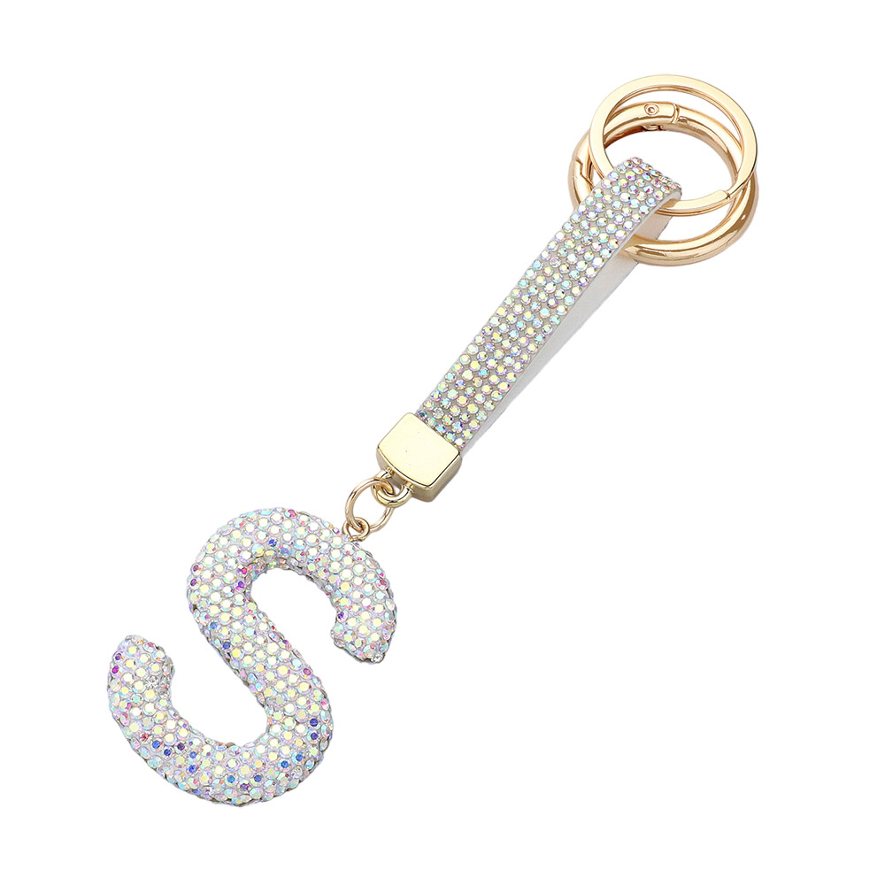 -A- Bling Studded Monogram Initial Keychain Bag Charm