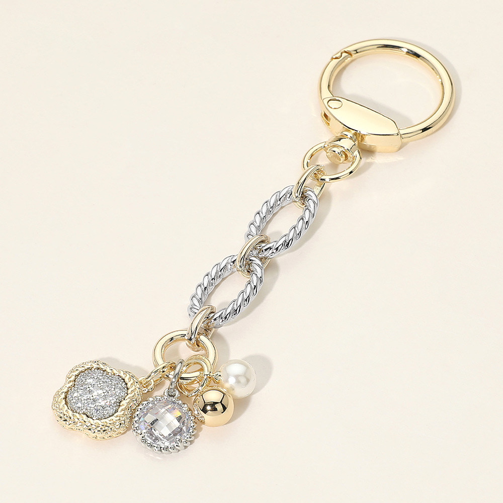 Details • Size : 5" L, 1" X 1.5" • Elegant multi charm keychain featuring a heart accent, textured crystal detail, and mixed shape charms on a linked chain. Designed to elevate keys or bags with a refined decorative touch, this versatile accessory works beautifully as a thoughtful gift, boutique add-on, or everyday statement piece with timeless appeal. • CZ Cubic Zirconia • Gold Dipped