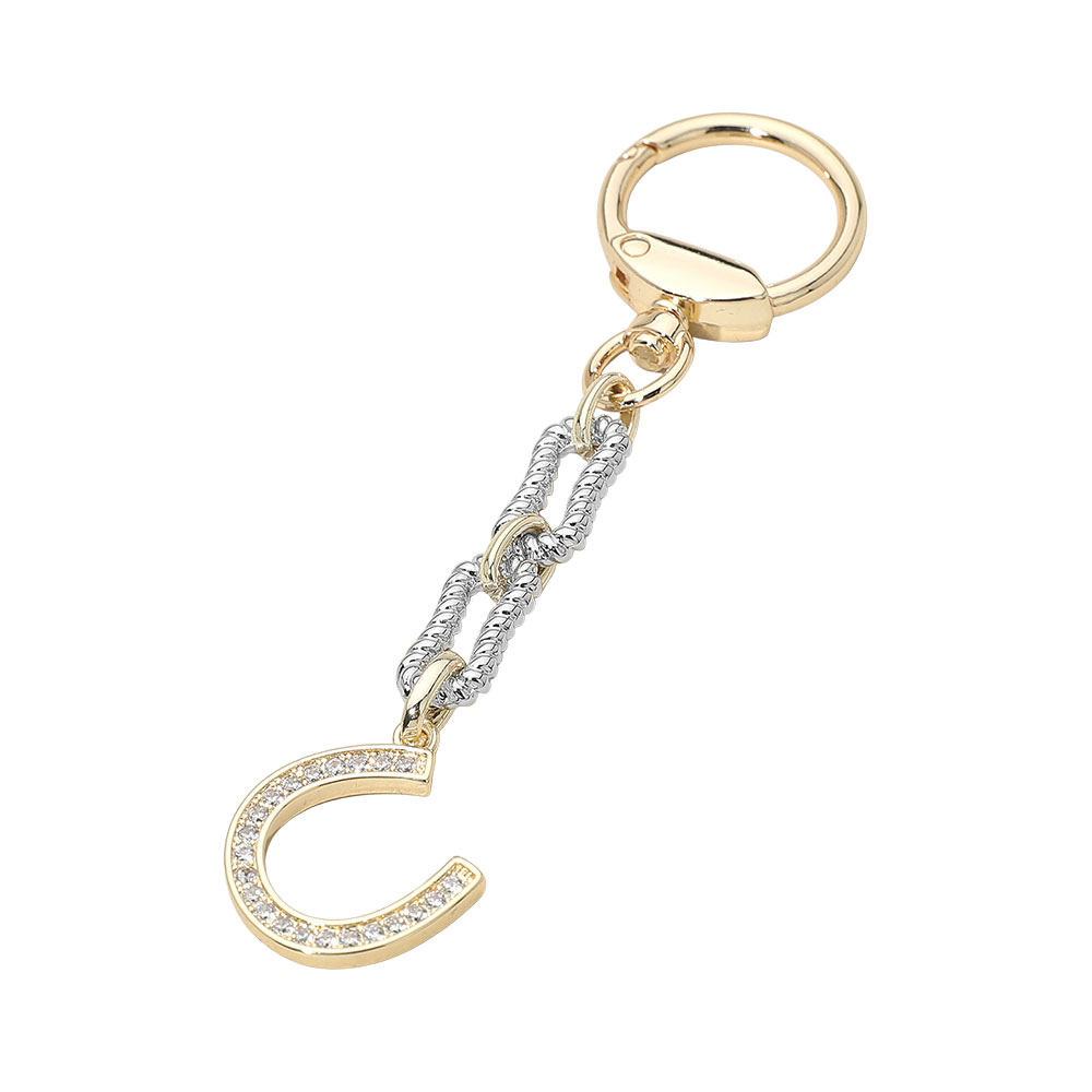 Details • Size : 4.75" L, 1" X 1" • A refined keychain featuring an initial charm accented with shimmering detailing and linked chain elements. Designed to add a personal touch to everyday essentials, it offers a polished, stylish look that suits bags, keys, and accessories alike. • CZ Cubic Zirconia • Gold Dipped