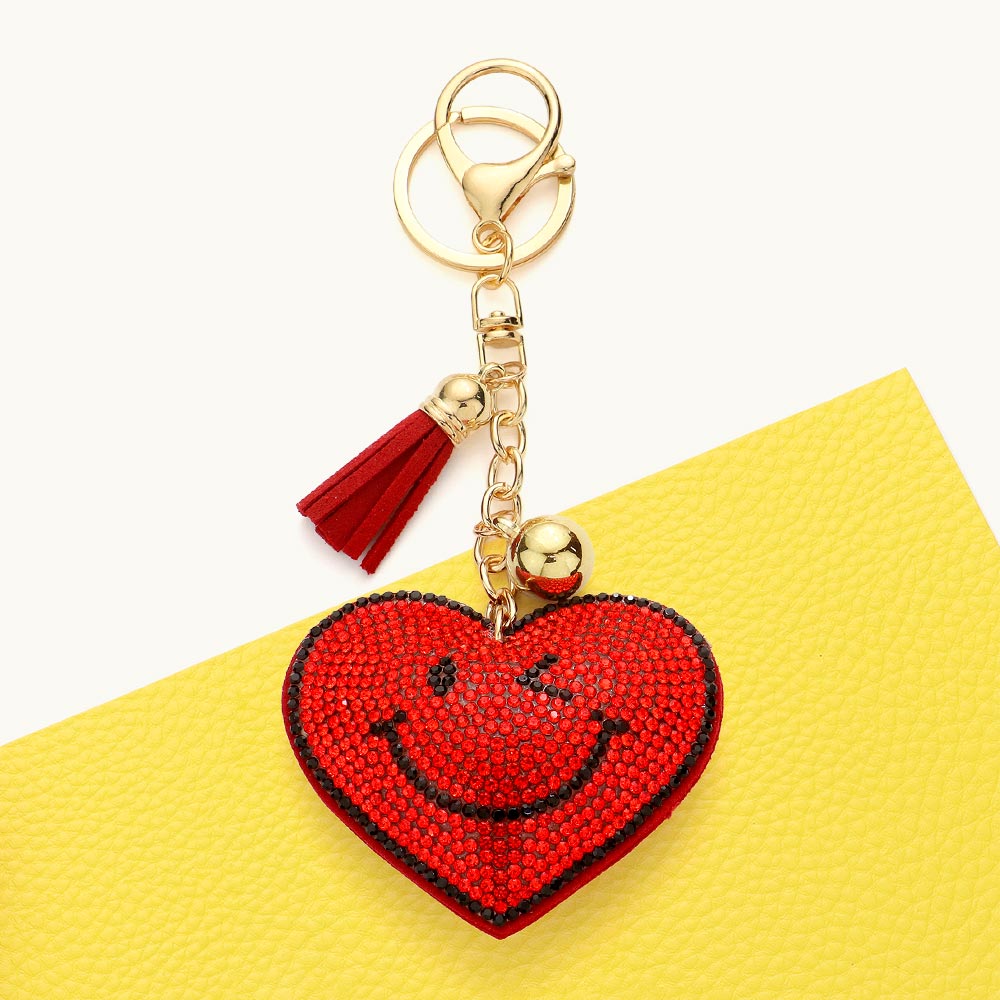 14K Gold Plated CZ Heart Square Pearl Cluster Charm Drop Keychain Bag Charm