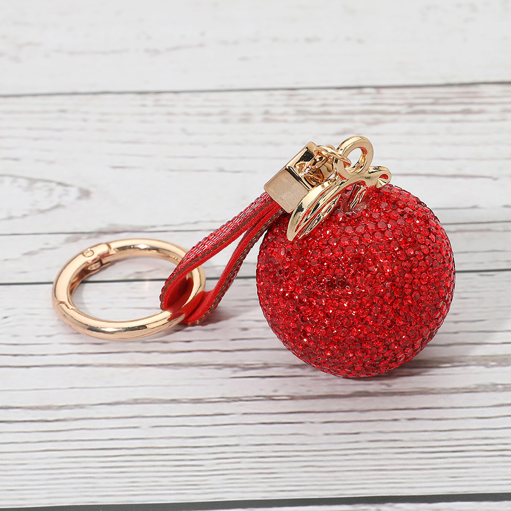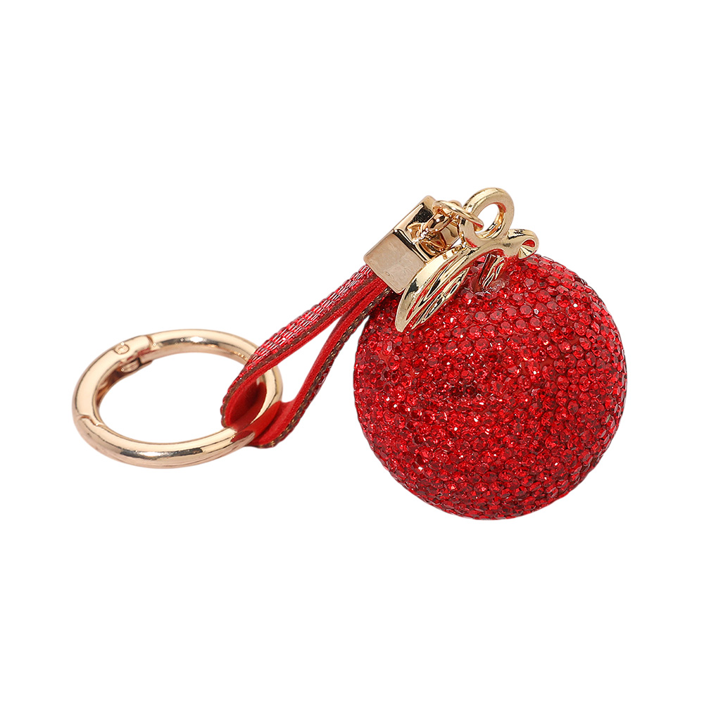 Details • Size : 5.6" L, 1.6" X 4.5" • Stylish apple-shaped keychain decorated with shimmering rhinestones, paired with a matching strap for convenience. A chic accessory for keys, bags, or gifts, combining sparkle, durability, and everyday charm.