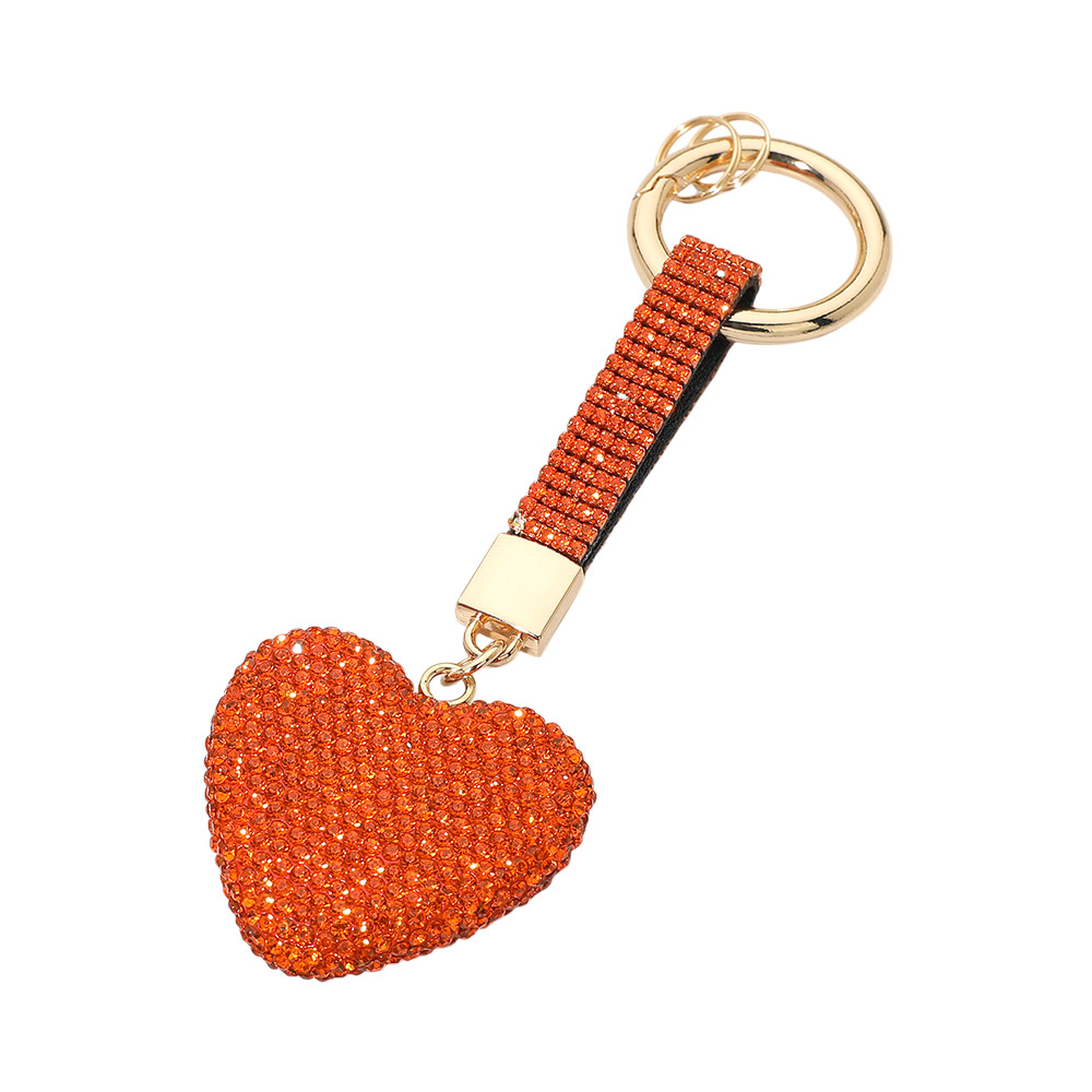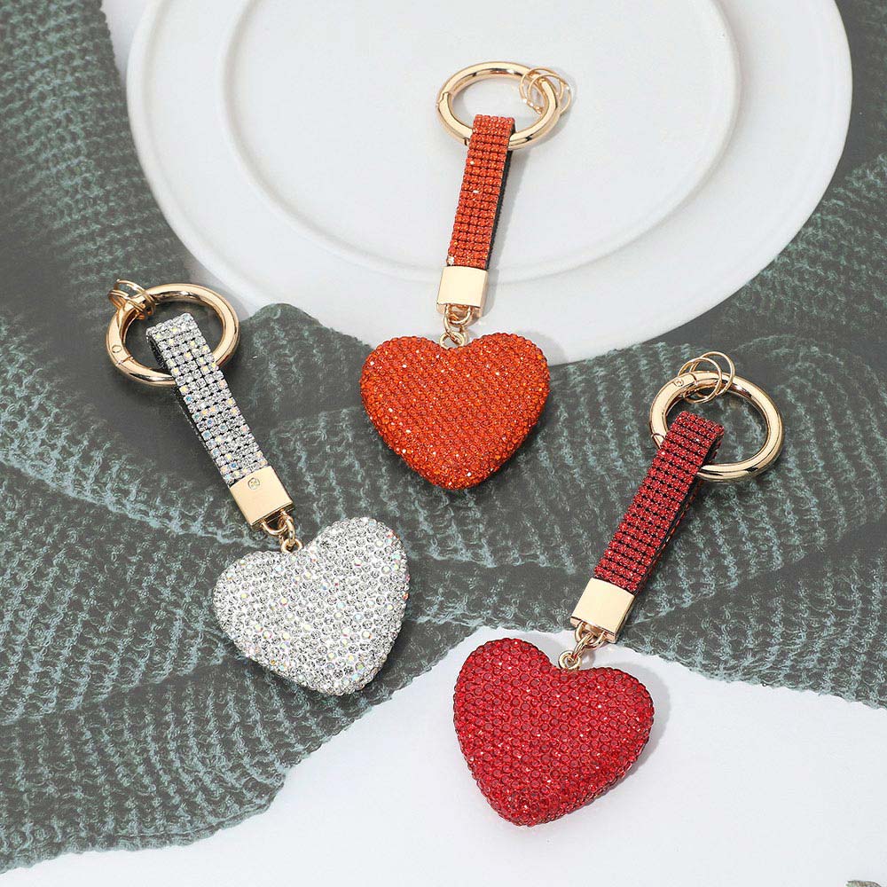 Details • Size : 5.3" L, 1.8" X 3.8" • Heart-shaped rhinestone keychain designed to add a bold, stylish accent to keys, handbags, backpacks, and accessories. Features a sparkling charm with a sleek strap detail, making it ideal for boutiques, gifts, party favors, and trendy everyday add-ons customers love. • Lead and Nickel Compliant