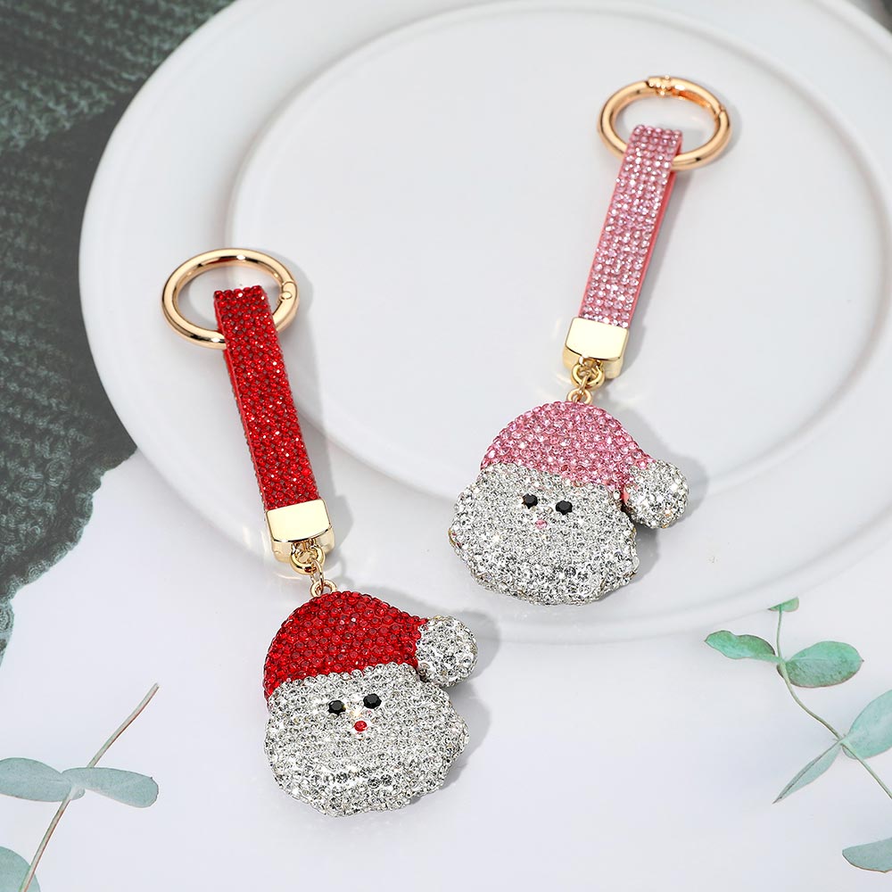 • Festive Santa Claus keychain covered in shimmering rhinestones with a matching strap for easy use. A fun and sparkling holiday accessory perfect for decorating keys, handbags, or gift wrapping. Brings cheerful Christmas spirit and makes a charming seasonal gift idea.