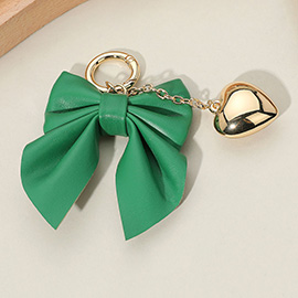 Faux Leather Bow Metal Heart Drop Keychain Bag Charm
