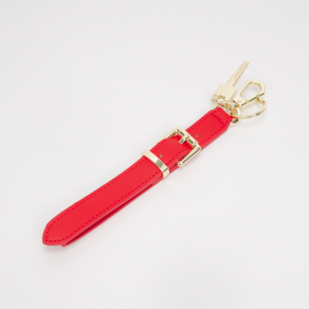 Faux Leather Key Accent Belt Wristlet Keychain Strap Bag Charm