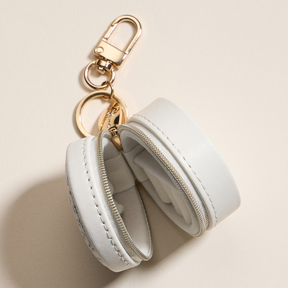 Floral Pattern Printed Round Shaped Travel Jewelry Case Keychain Bag Charm