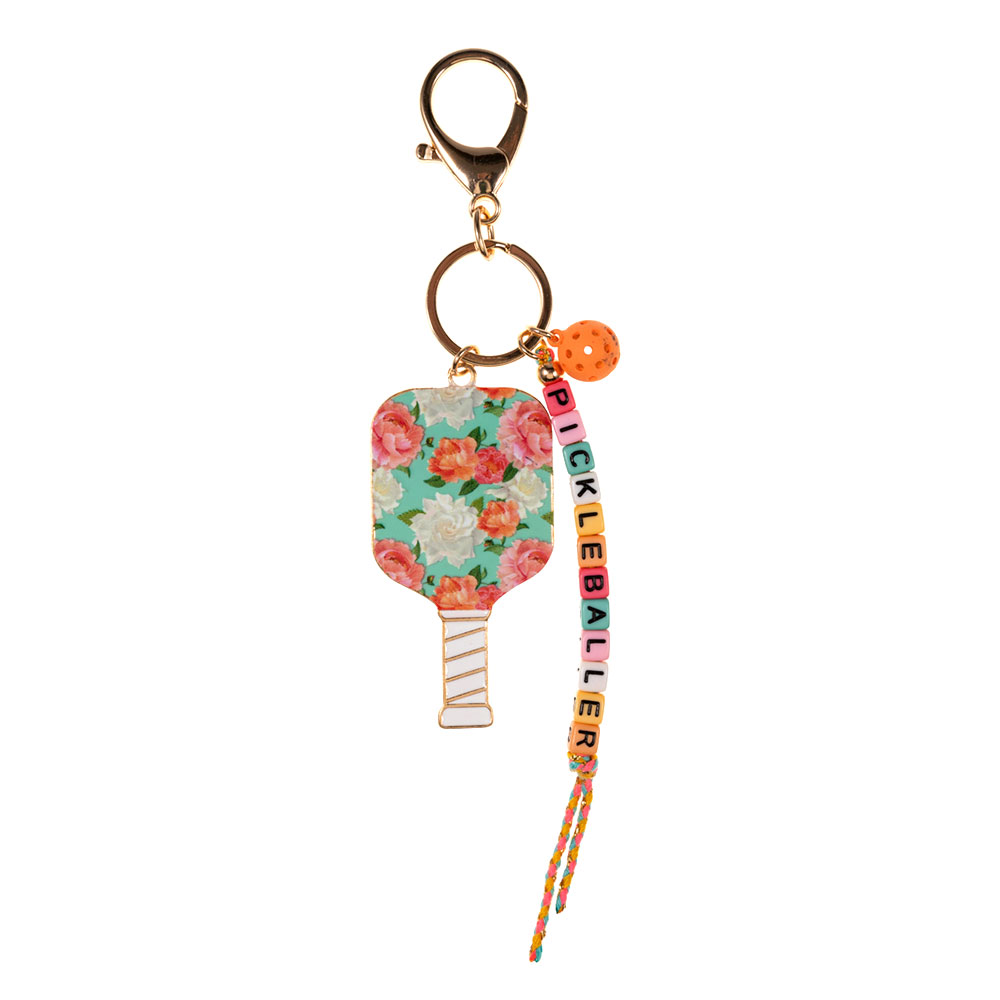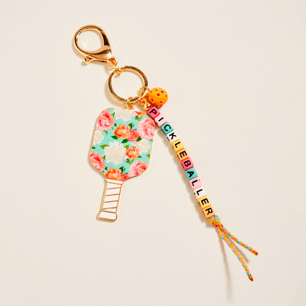 Floral Pickleball Paddle PICKLEBALLER Beaded Keychain Bag Charm