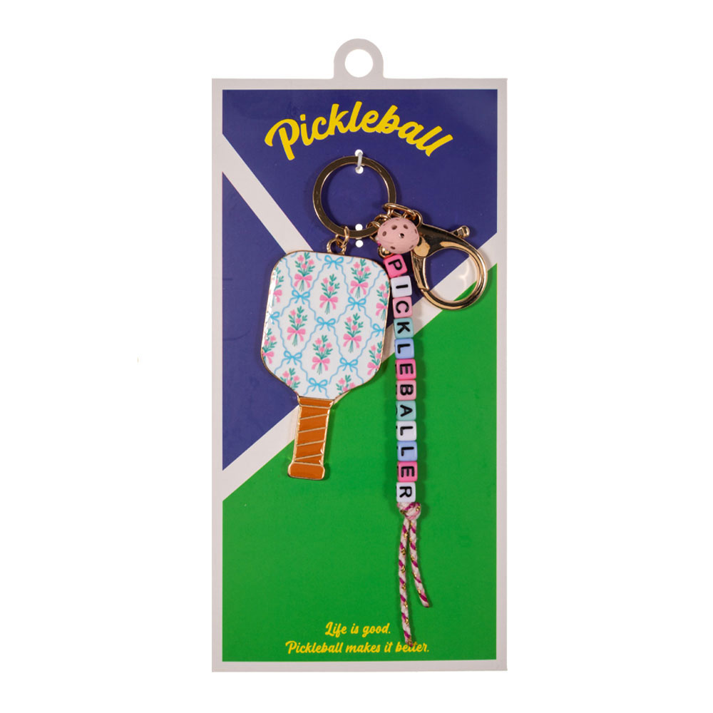 Details • Size : 6.25" L, 1.5" X 5.25" • This pickleball paddle keychain bag charm features a playful paddle motif with decorative accents that add personality to keys, backpacks, and handbags. Designed for pickleball fans, it makes a fun gift, sporty accessory, or everyday charm that keeps essentials easy to spot and stylish on the go. • Lead and Nickel Compliant
