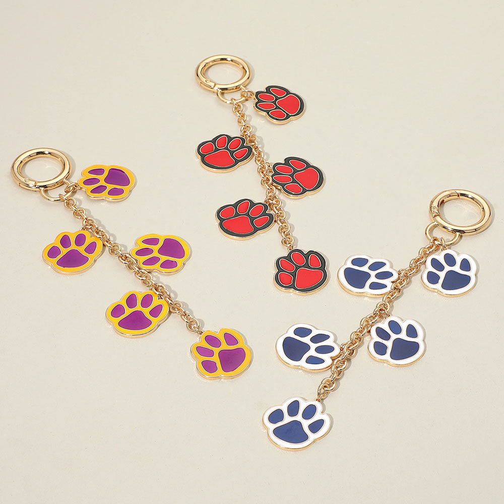 Details • Size : 6.6" L, 1" X 5.25" • Show off your love for animals with this paw print charm keychain, featuring multiple enamel paw prints on a gold chain. A playful and trendy accessory perfect for pet lovers to add personality to keys, bags, or backpacks. • Lead and Nickel Compliant