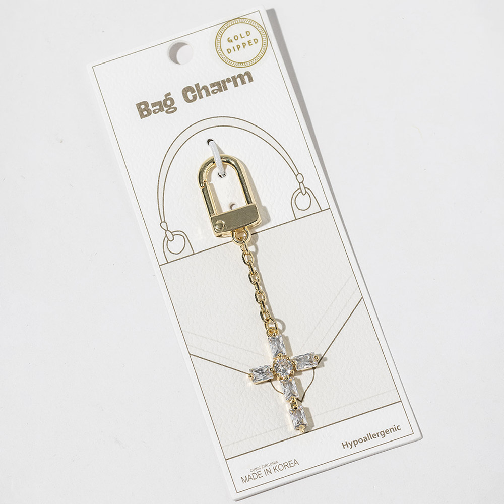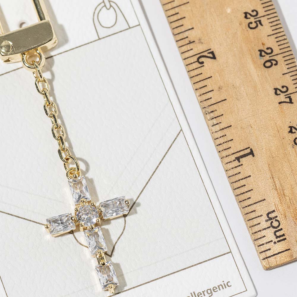 Gold Dipped CZ Cross Drop Keychain Bag Charm