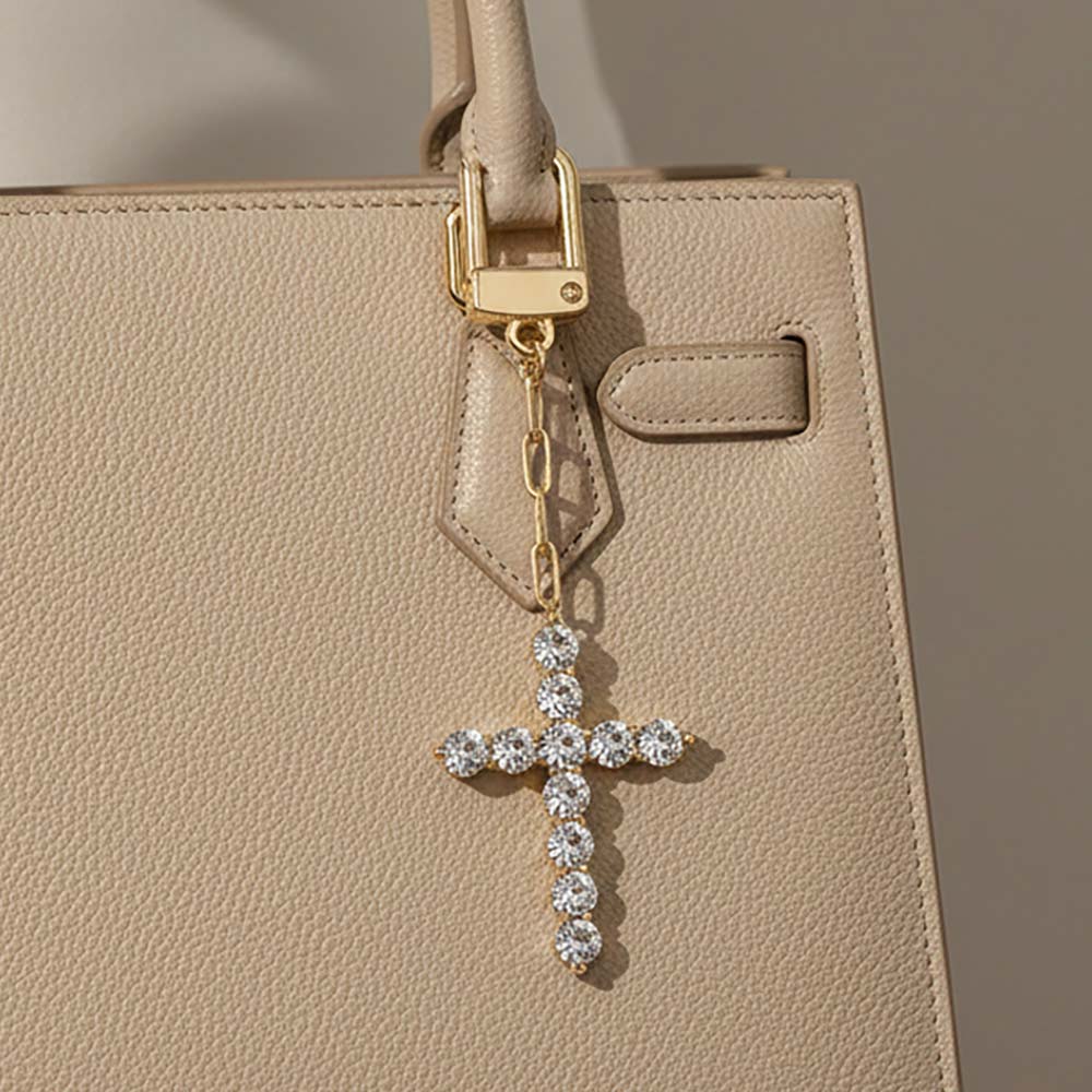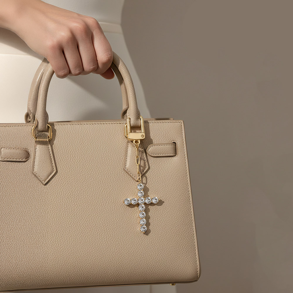 • Elegant cross bag charm keychain designed with sparkling crystal detailing for a timeless and meaningful statement. Easily clips onto handbags, totes, backpacks, or keys to add refined shine. A versatile accessory ideal for everyday styling, gifting, and boutique collections with symbolic appeal.