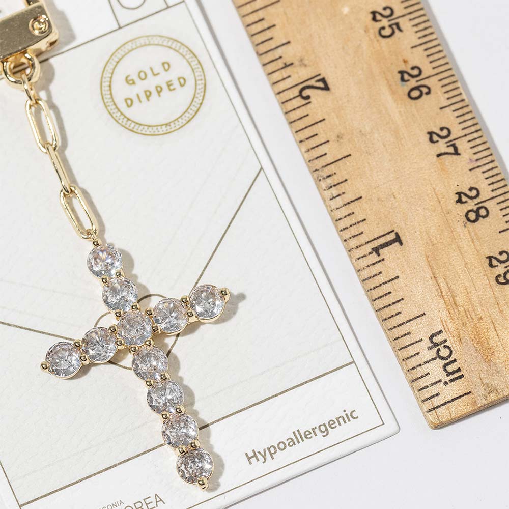 Gold Dipped CZ Cross Drop Keychain Bag Charm