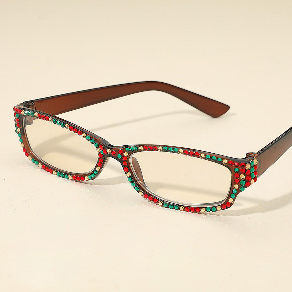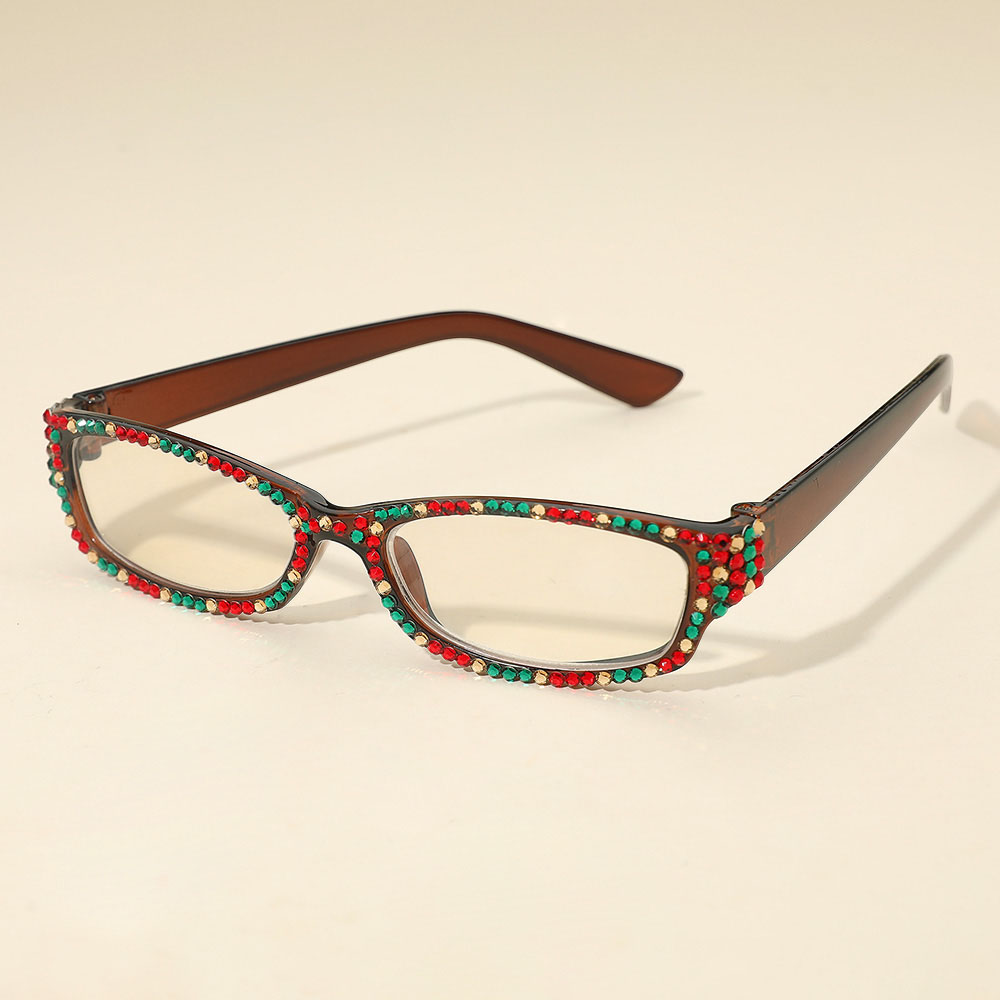 Details • Size : 5.5" X 1.25" • Handmade with Genuine Crystals • Stylish rectangle glasses accented with sparkling rhinestones for a bold and playful look. Perfect for parties, themed events, or everyday wear, these frames combine comfort and standout glamour in a fun statement accessory.