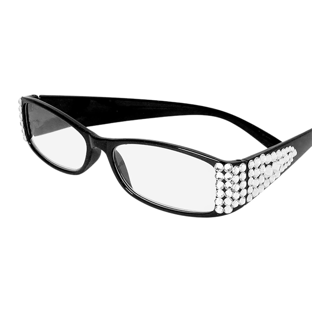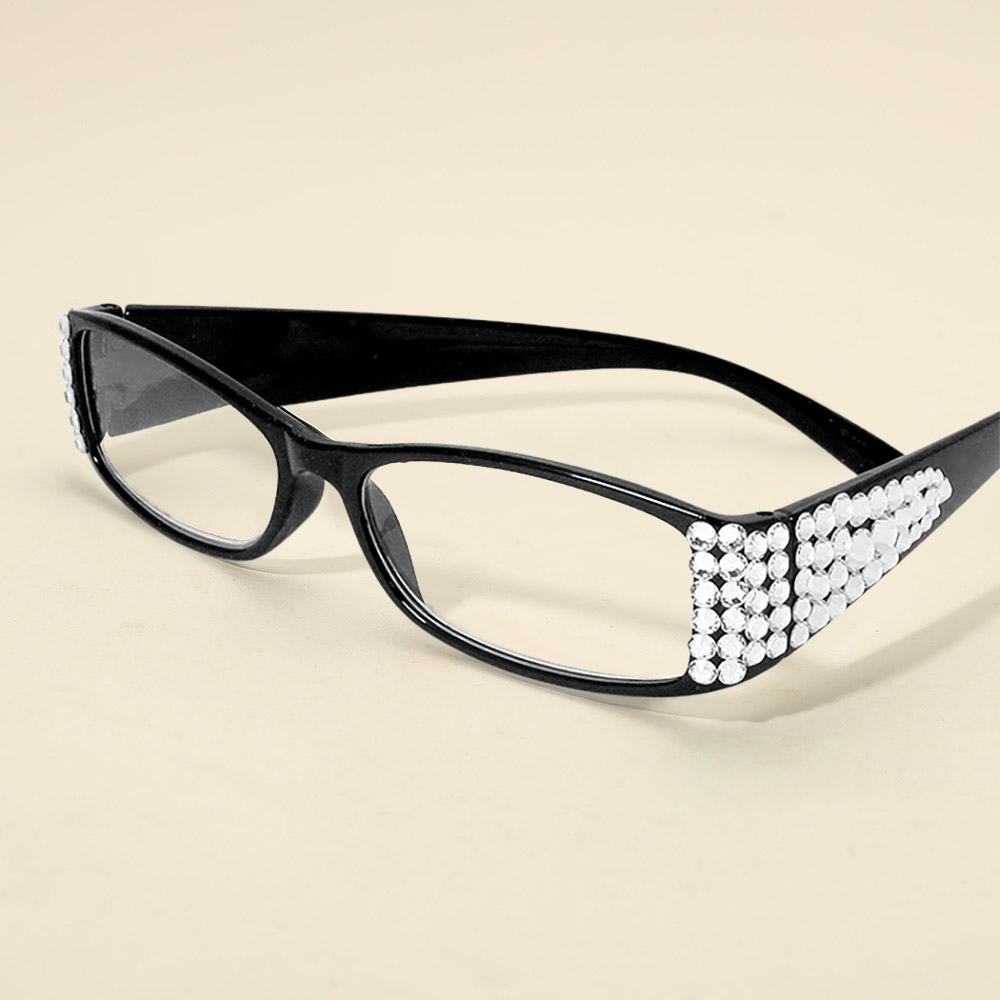 • Stylish reading glasses designed with sparkling embellishments along the frames. Offering both function and flair, they bring a touch of glamour to everyday eyewear while ensuring comfort and clarity for daily use.