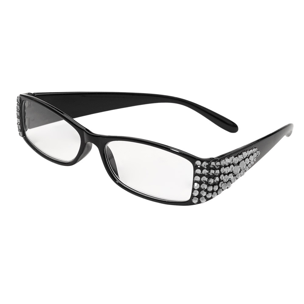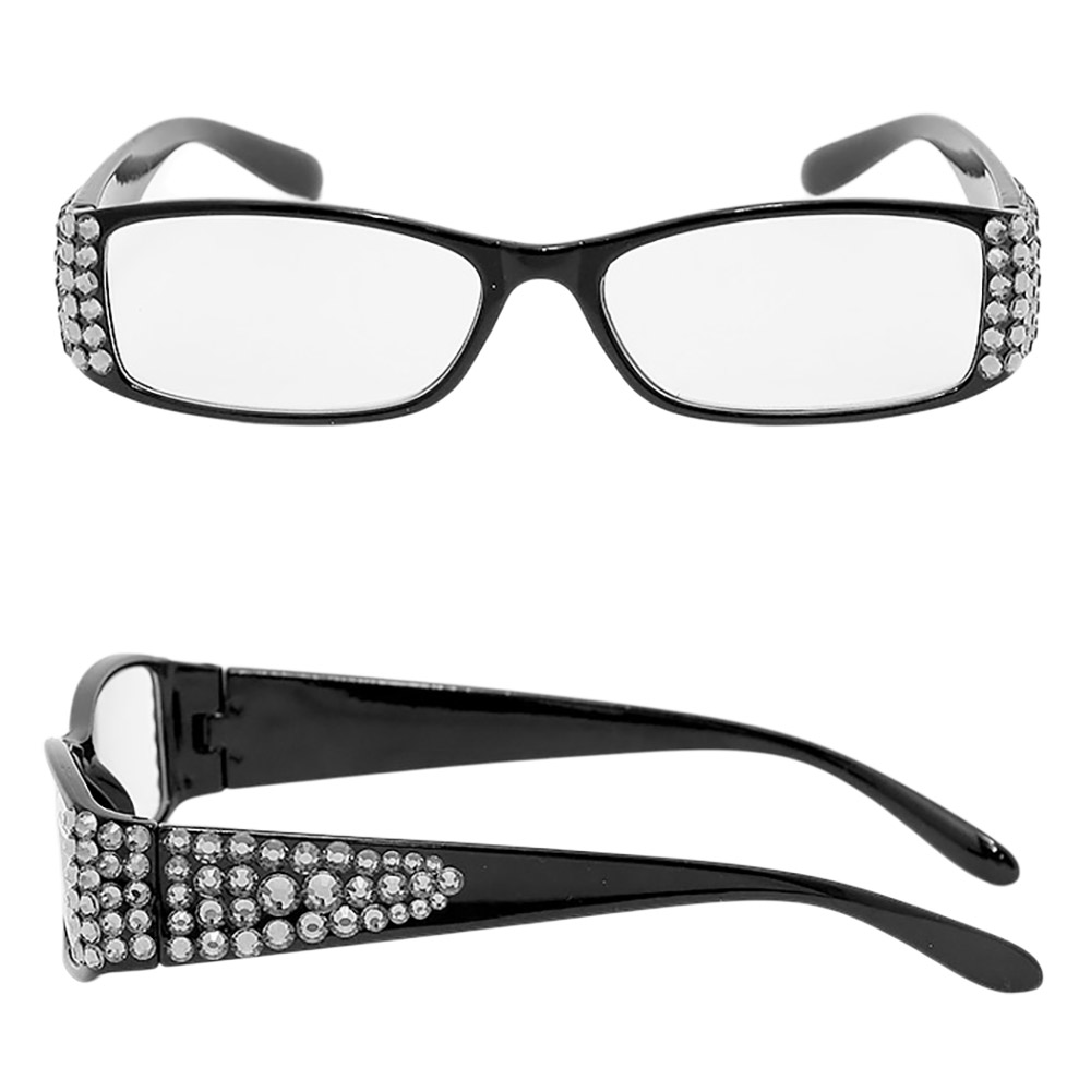 • Stylish reading glasses designed with sparkling embellishments along the frames. Offering both function and flair, they bring a touch of glamour to everyday eyewear while ensuring comfort and clarity for daily use.
