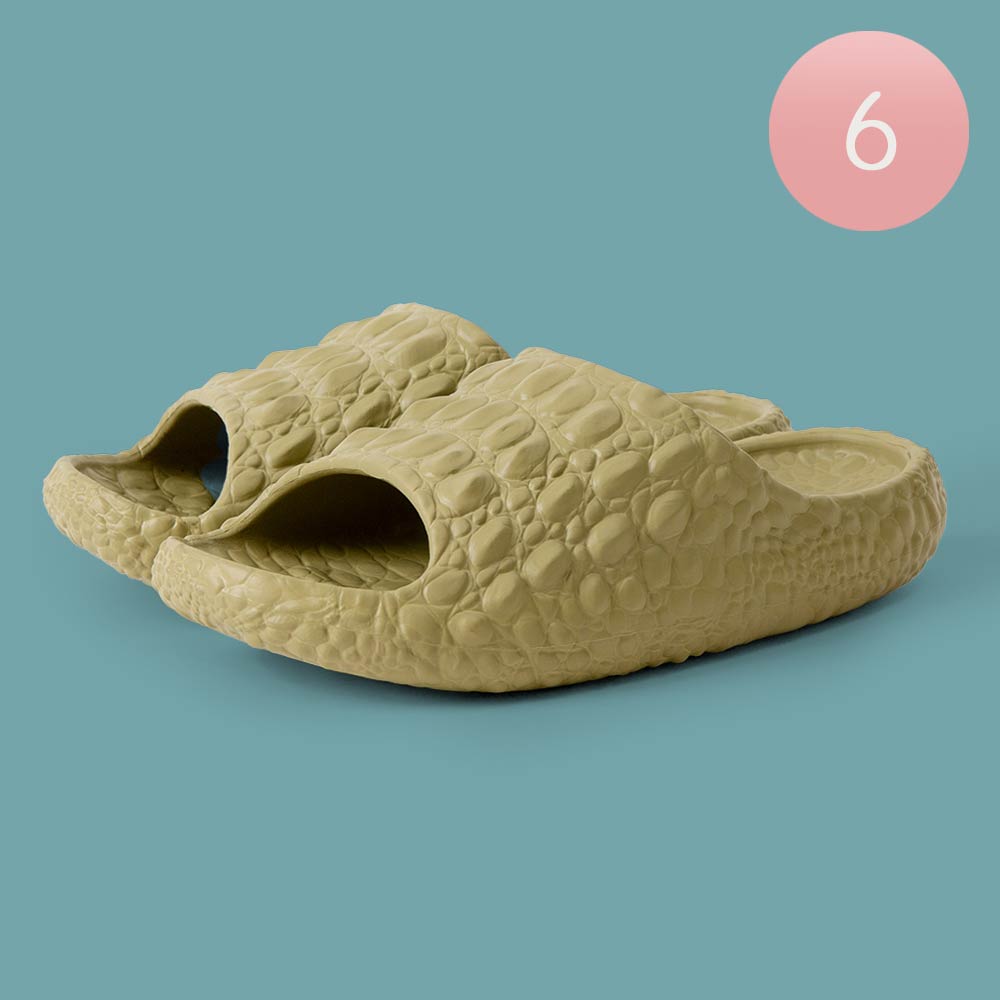 6Pairs - Womens Solid Crocodile Slide Slippers