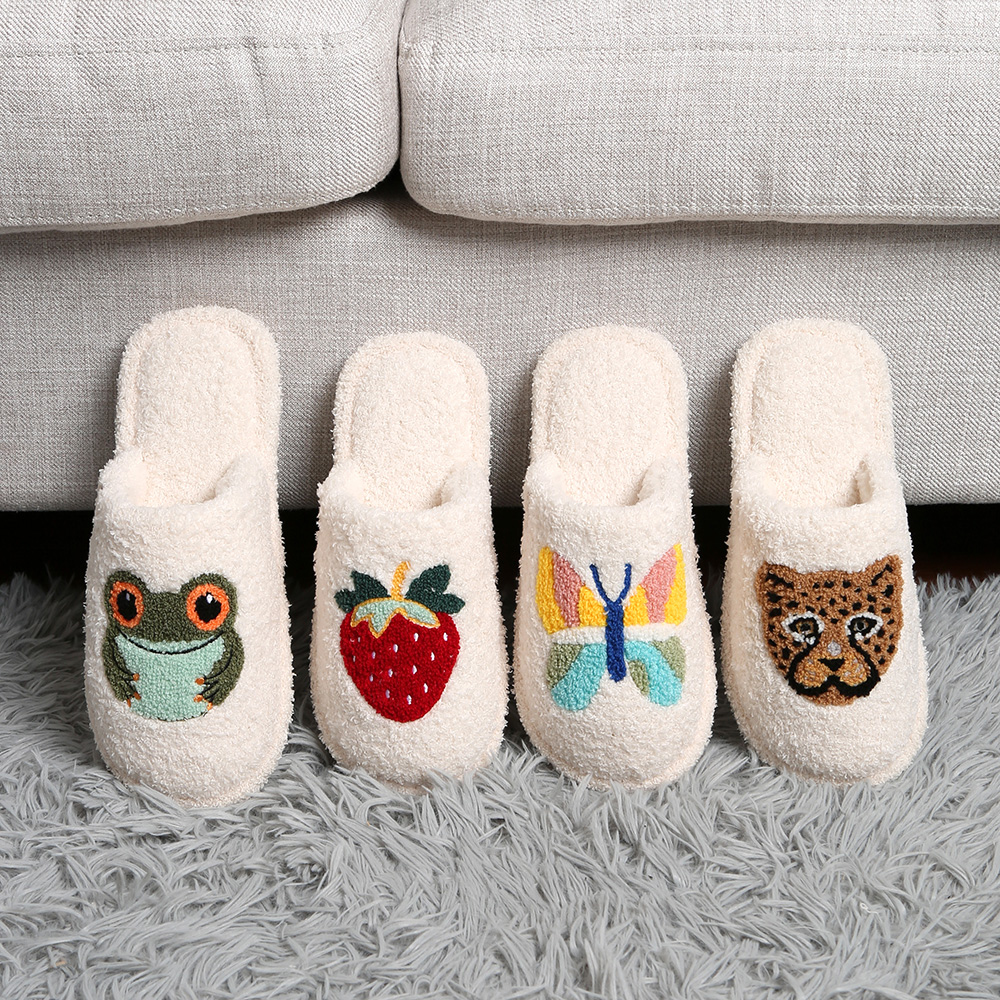 Details • Size : M/L (Women 8-10, Men 7-9) • Material : 100% Poly. Microfiber • Stay warm and stylish at home with these cozy indoor slippers featuring a bright strawberry embroidery. Perfect for everyday comfort, they provide softness, warmth, and a fun playful accent, making them an ideal gift or personal lounging essential.