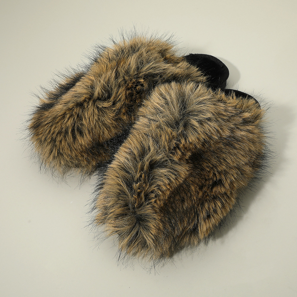 Details • Size : S/M/L/XL • Material : 100% Faux Fox Fur • Stay cozy and chic with these plush faux fur slippers featuring a soft, fox-inspired fluffy trim. Perfect for home lounging, they combine warmth, comfort, and style in one. Available in multiple sizes, making them a must-have addition to your relaxation wardrobe.