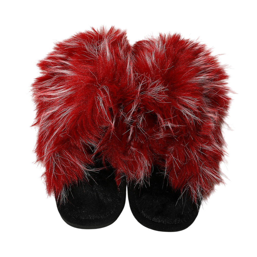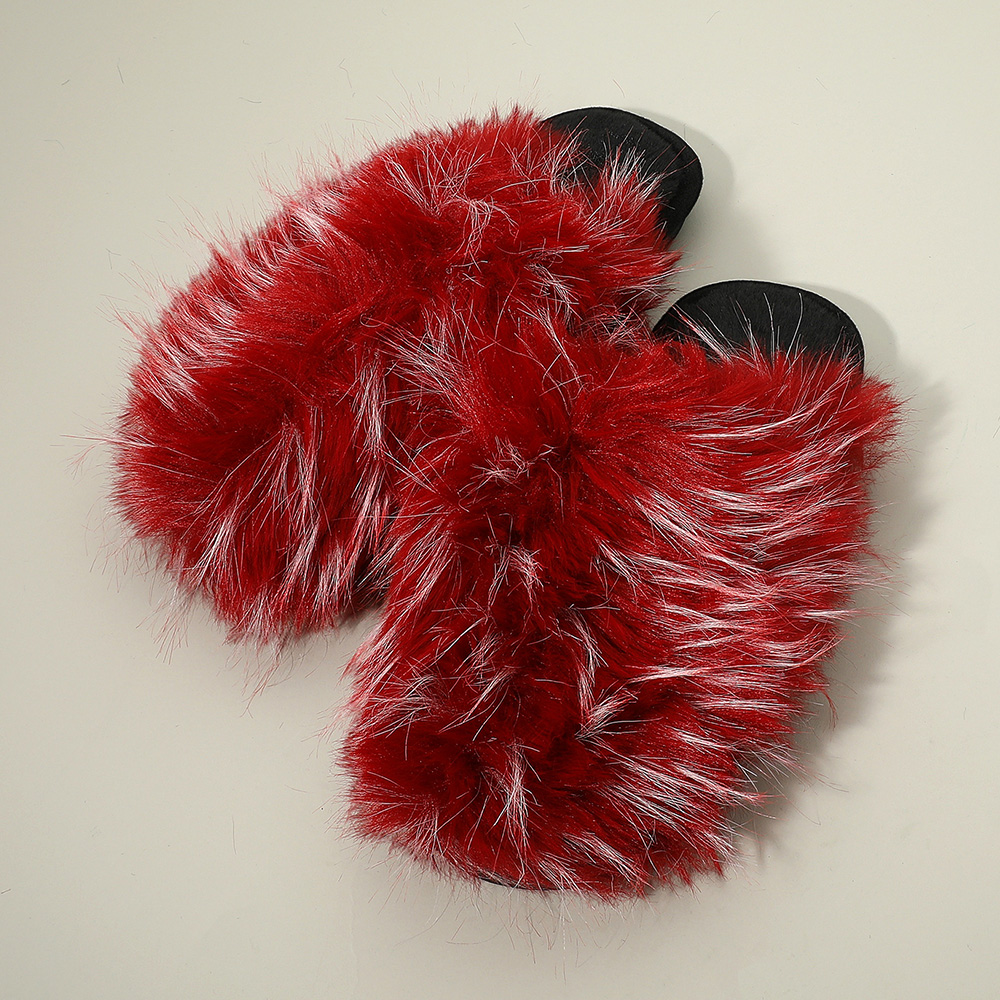 Details • Size : S/M/L/XL • Material : 100% Faux Raccoon Fur • Step into comfort with these cozy faux fur slippers featuring a plush raccoon-inspired fluffy trim. Designed for warmth and style, they’re perfect for lounging at home or adding a touch of playful luxury to your casual wear. Available in multiple sizes for the perfect fit.