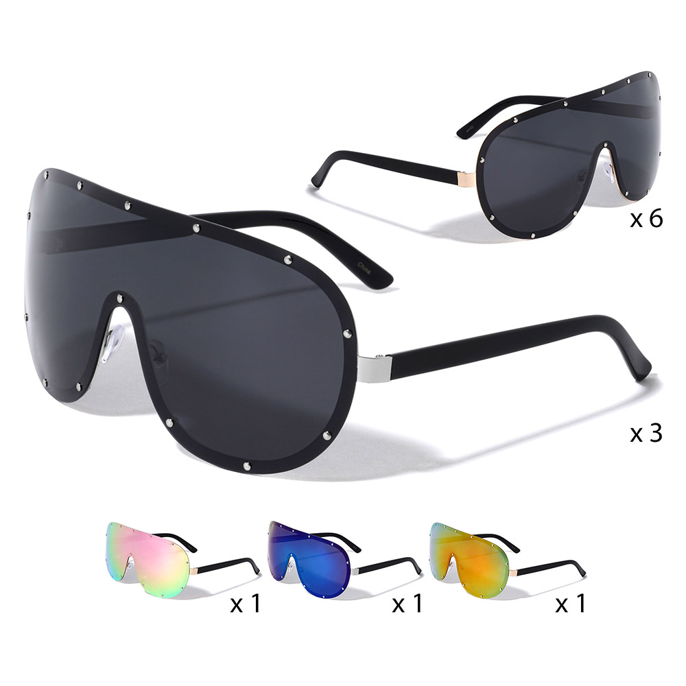 • Rimless shield fashion sunglasses multipack designed with a bold wraparound silhouette for modern, trend focused styling. Lightweight and comfortable for extended wear, this assorted set is ideal for everyday outfits, travel, festivals, or resale, offering versatile statement options that add confident edge and standout appeal to any accessory collection.