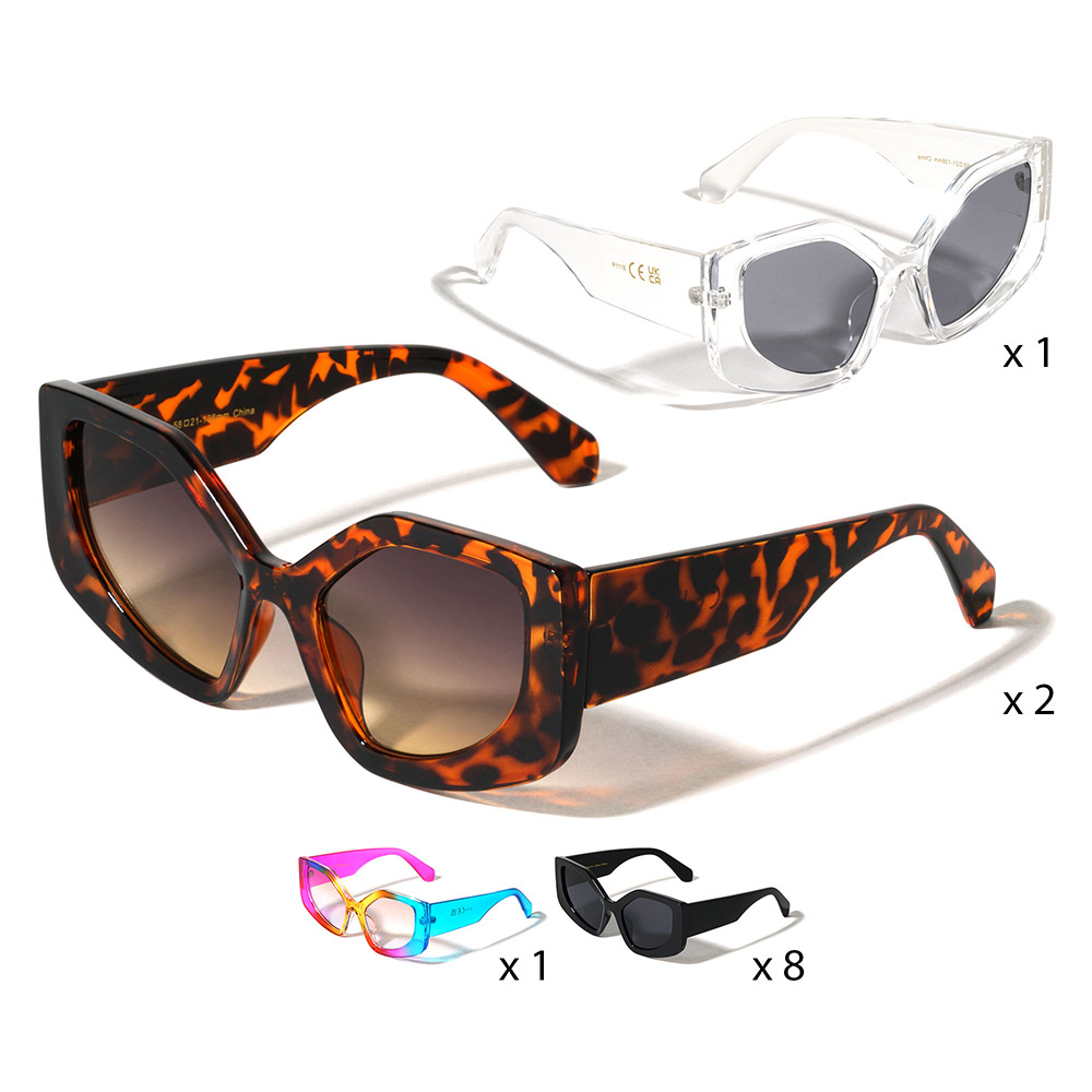 Details • Size : 5.75" X 2.25" • UV Protection • Square cat eye frame fashion sunglasses multipack designed for versatile everyday styling and resale value. Features a mix of modern silhouettes that pair easily with casual outfits, travel looks, or weekend wear. Lightweight and comfortable, this assorted set adds variety, trend appeal, and easy styling options to any accessory collection.