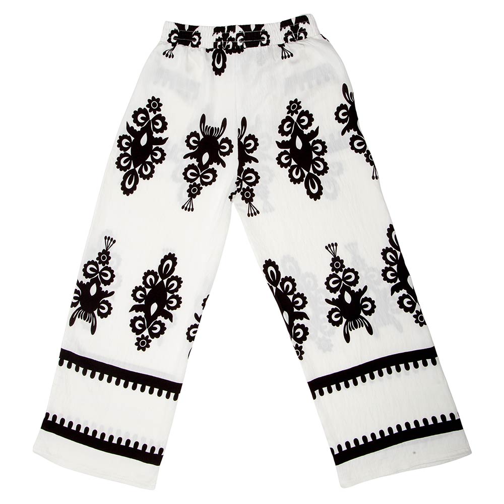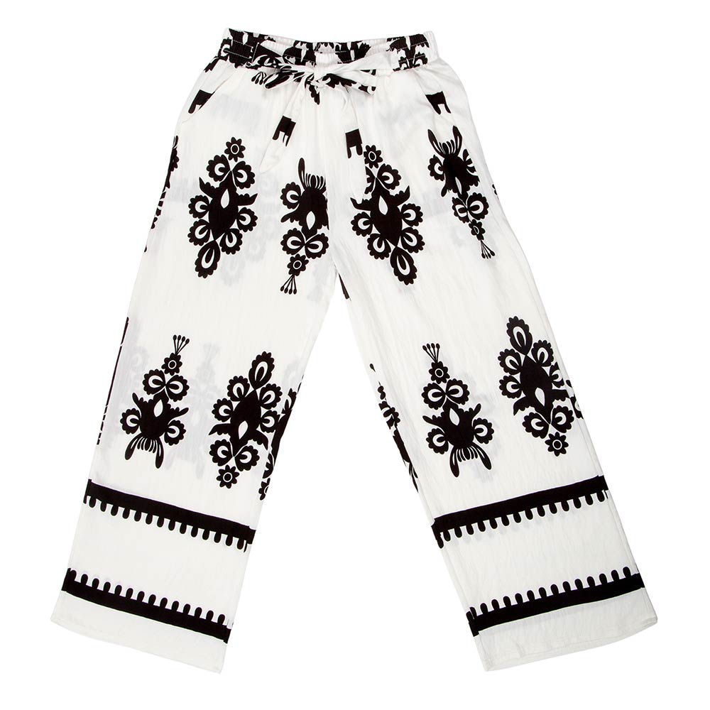 • Flowy wide leg pants designed with an ornate allover print and an easy elastic waistband for comfortable pull-on wear. The relaxed silhouette creates a flattering drape with effortless movement, making these pants ideal for everyday styling, resort looks, or boutique collections. A versatile statement piece that pairs easily with simple tops, sandals, or layered outfits for casual to elevated wear.