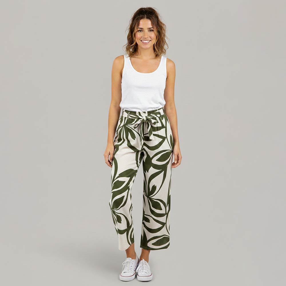Leaves Print Wide Leg Pants